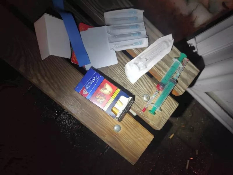 Strażnicy ujawnili przy nim buteleczkę z płynem oraz dwie zakrwawione strzykawki z igłami. Po kilku minutach mężczyzna przyznał, że „ma problem z heroiną”. Funkcjonariusze okryli mężczyznę kocem termicznym i wezwali pogotowie ratunkowe, które zabrało go do szpitala.