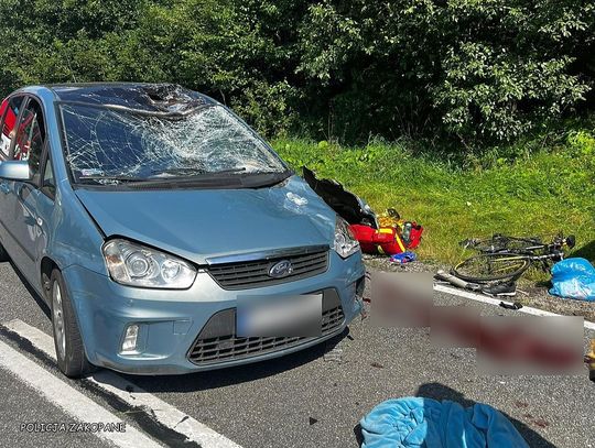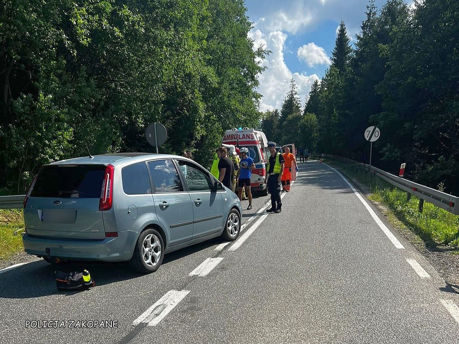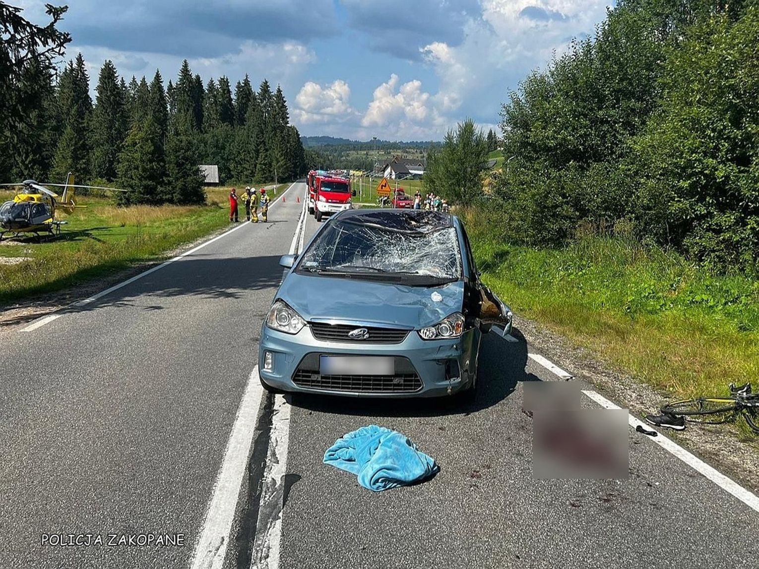 W minioną niedzielę tj. (20.08.2023 r.) popołudniu na drodze krajowej K-49 w miejscowości Jurgów doszło do poważnego wypadku drogowego. Tatrzańscy policjanci odebrali zgłoszenie, iż na leśnym odcinku drogi samochód osobowy nagle zjechał na przeciwny pas i uderzył w jadącego z przeciwka rowerzystę. W wyniku kolizji z samochodem 60-letni rowerzysta z woj. podkarpackiego doznał poważnych obrażeń ciała. Na miejscu bardzo szybko pojawiły się służby ratunkowe oraz policjanci. Ratownicy prowadzili czynności ratujące życie poszkodowanego rowerzysty, a policjanci przystąpili do zabezpieczenia miejsca zdarzenia oraz wyjaśniania okoliczności i przyczyn wypadku. Koniecznym było wezwanie na miejsce Lotniczego Pogotowia Ratunkowego, które przetransportowało poszkodowanego do specjalistycznego szpitala w Krakowie.