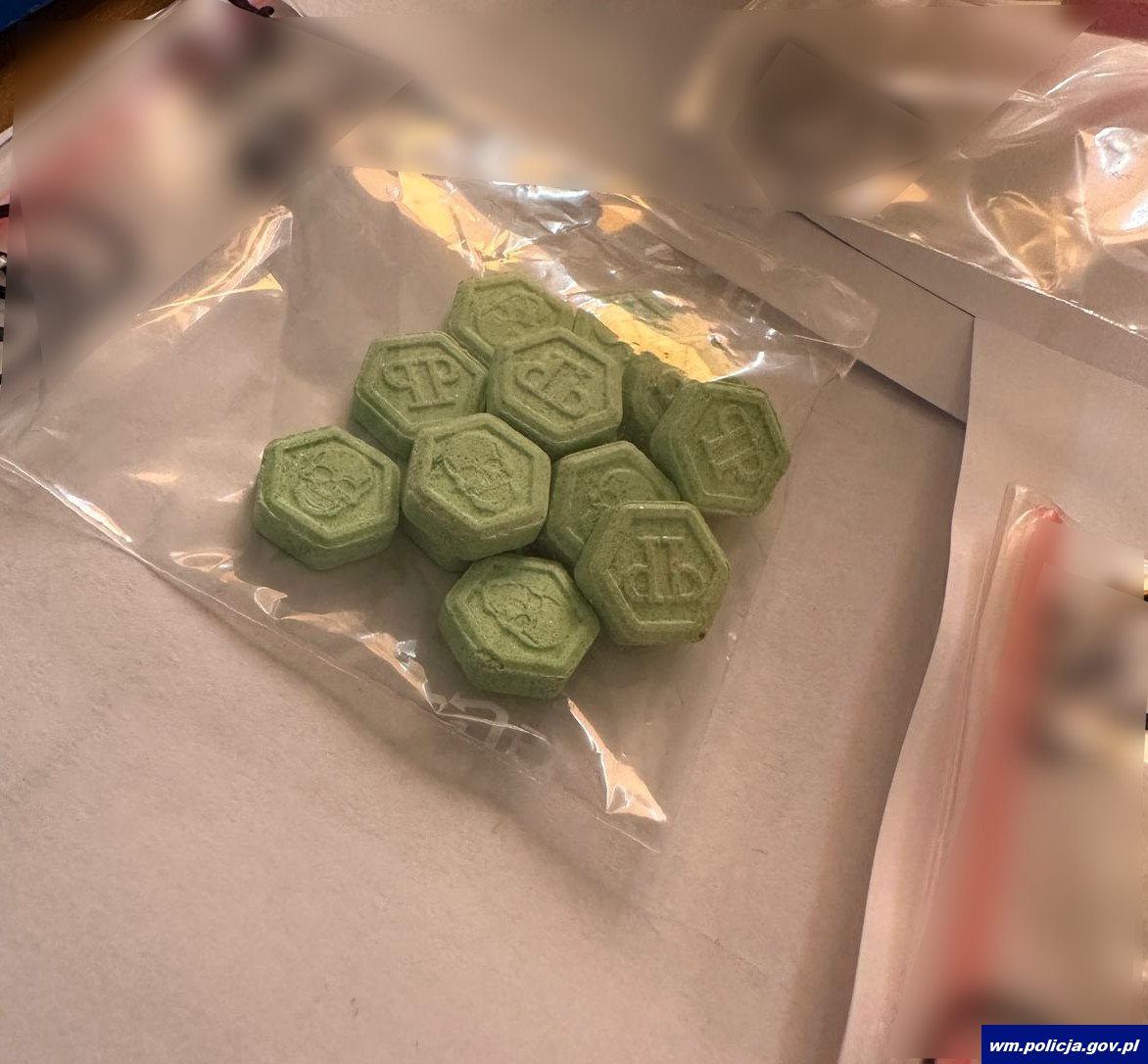 W poniedziałek (11.09.2023 r.) na jednej z ulic w Olsztynie funkcjonariusze z Wydziału Zabezpieczenia Miasta w Olsztynie zatrzymali do kontroli drogowej osobowego mercedesa. Jeden z pasażerów siedzący na fotelu z przodu na widok policjantów zaczął się nerwowo zachowywać. Funkcjonariusze postanowili sprawdzić co jest powodem tej reakcji. Po chwili mężczyzna ten podjął próbę ucieczki, która natychmiast została udaremniona przez funkcjonariuszy. W toku czynności policjanci przy 20-latku ujawnili woreczki foliowe z zawartością substancji zabronionych w postaci susz koloru zielonego, tabletek oraz substancję w postaci kryształu. Wstępne badanie wykazało, że była to m.in. marihuana, tabletki MDMA oraz mefedron. Jeszcze tego samego dnia policjanci z Wydziału dw. z Przestępczością Narkotykową Komendy Miejskiej Policji w Olsztynie przy współpracy z funkcjonariuszami z Komisariatu Policji w Dobrym Mieście wytypowali mieszkanie, gdzie 20-latek mógł przechować narkotyki.