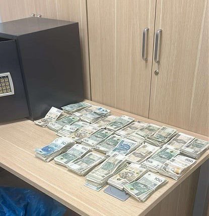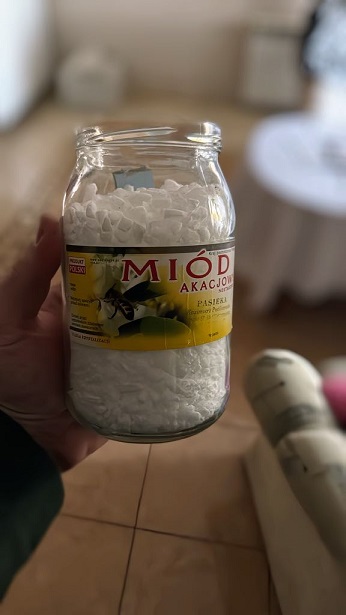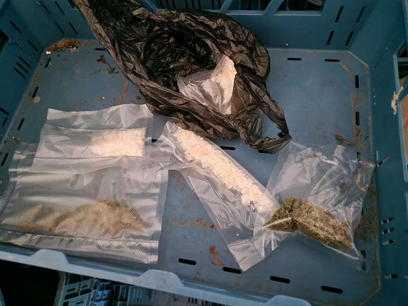 Kolejny zatrzymany to 34-letni mieszkaniec powiatu leszczyńskiego. Kryminalni przeszukali pomieszczenia mieszkalne i gospodarcze zajmowane przez mężczyznę. W czynnościach wspomagał ich pies służbowy wraz ze swoim przewodnikiem z Komendy Miejskiej Policji w Poznaniu. W wyniku tych czynności kryminalni znaleźli 5 woreczków z suszem roślinnym, oraz słoik po miodzie wypełniony zbrylonym białym proszkiem. Wykonane testy wykazały, że znalezione substancje to marihuana i metamfetamina. Podczas przeszukania kryminalni znaleźli również 273 tysiące złotych. Policjanci zabezpieczyli łącznie 1100 gramów narkotyków oraz gotówkę.