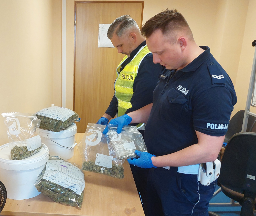 Po krótkiej kontroli 38-latka, policjanci dotarli do jego miejsca zamieszkania i przeszukali je. W jednym z pomieszczeń stały dwa plastikowe wiadra wypełnione suszem roślinnym. Wszystkie narkotyki zostały zabezpieczone, a ich właściciel trafił do celi grodziskiej komendy. Po sprawdzeniu znalezionych środków okazało się, że jest to ponad kilogram marihuany i ponad 33 gramy haszyszu.