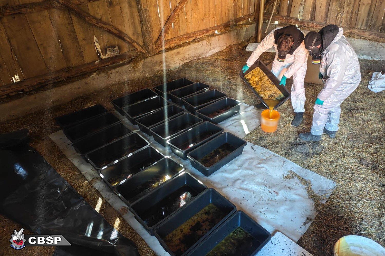 Na terenie jednej z posesji funkcjonariusze odkryli blisko 120 kg klofedronu w postaci kryształu, ponad 600 litrów substancji w formie płynnej oraz ok. 1000 litrów odczynników chemicznych wykorzystywanych do produkcji 3-CMC. Wartość przejętych narkotyków na czarnym rynku to blisko 6 milionów złotych.