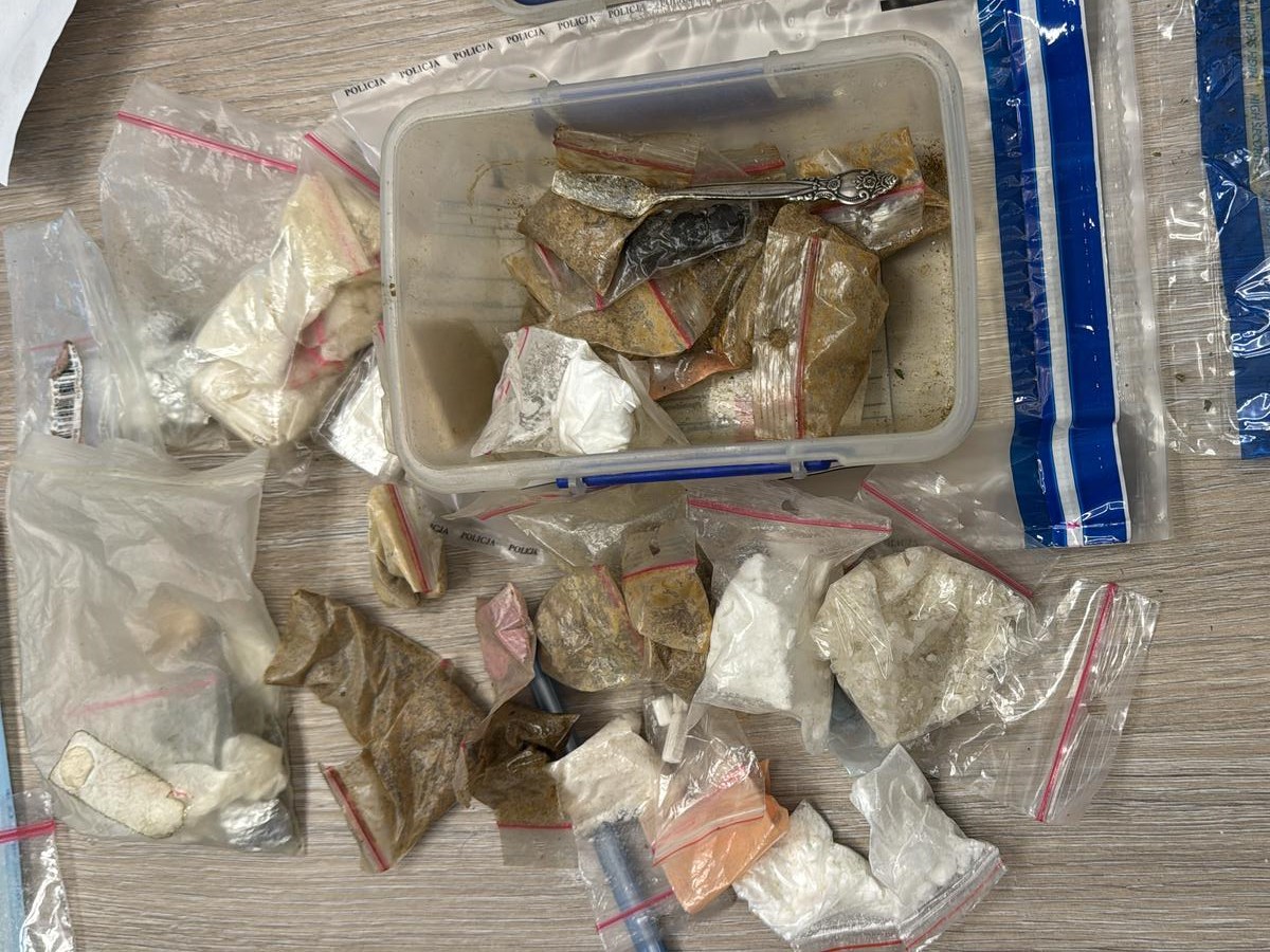 W wyniku przeszukania funkcjonariusze zabezpieczyli narkotyki w ilości ponad 2,7 kg oraz 826 szt. tabletek. Wśród przejętych środków odurzających i substancji psychotropowych była marihuana, haszysz, klefedron, amfetamina, metamfetamina, MDMA, MDEA, MBDB, morfina i kokaina. Łączna czarnorynkowa wartość przejętych narkotyków to ponad 150 tys. złotych. Policjanci zabezpieczyli także wiatrówki, karabinek ASG oraz broń sygnałową.