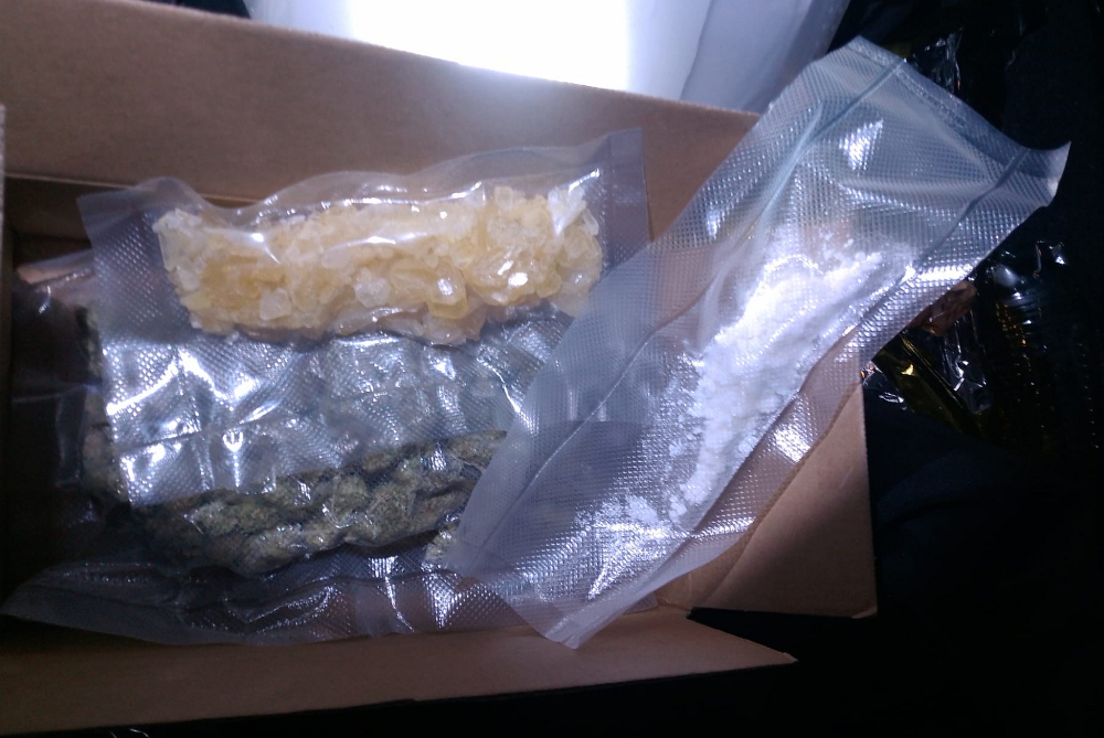 W trakcie przeszukania auta przy lewarku zmiany biegów policjanci ujawnili torebkę z białą substancją. W boczku drzwi kierowcy znaleźli szklaną butelkę z suszem roślinnym, a pod jego fotelem, kartonowe pudełko z hermetycznie zamkniętą skrystalizowaną substancją oraz biały proszek. Badanie wykazało, że mundurowi zabezpieczyli ponad 100 gramów ziela konopi innych niż włókniste, ponad 100 gramów 4-CMC potocznie zwanego klefedronem oraz blisko 11 gramów kokainy.