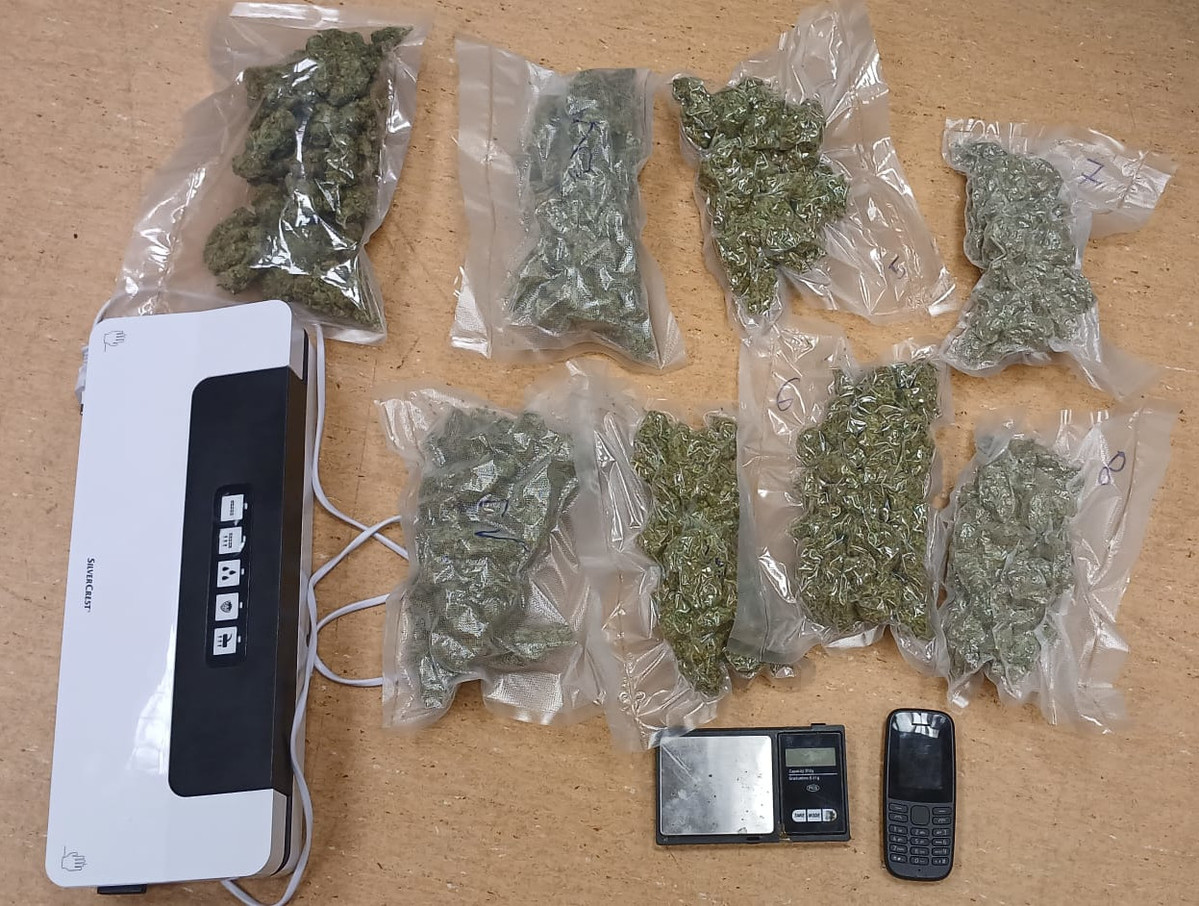Tego samego dnia funkcjonariusze udali się do miejsca zamieszkania mężczyzny i przeszukali lokal. W mieszkaniu ujawnili kolejne środki odurzające, w tym susz roślinny oraz jasną, zbryloną substancję. Wszystkie narkotyki zostały zabezpieczone i przekazane do badań laboratoryjnych.