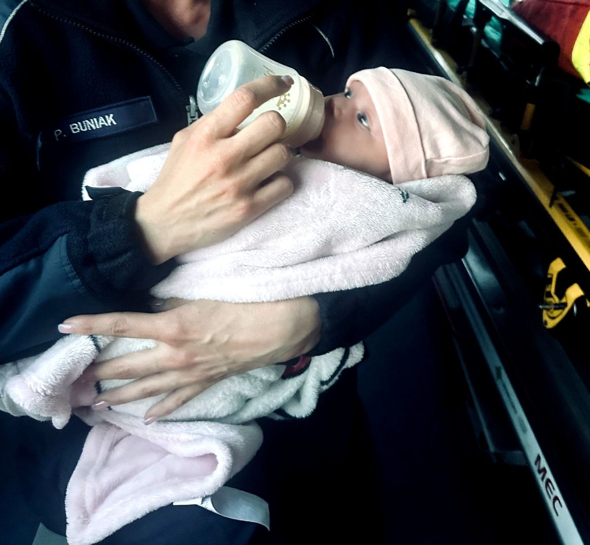 Na miejsce policjanci wezwali karetkę pogotowia. Do czasu przyjazdu karetki dziećmi zajęła się będąca na miejscu interwencji policjantka. Funkcjonariuszka nakarmiła mlekiem z butelki głodną dziewczynkę.