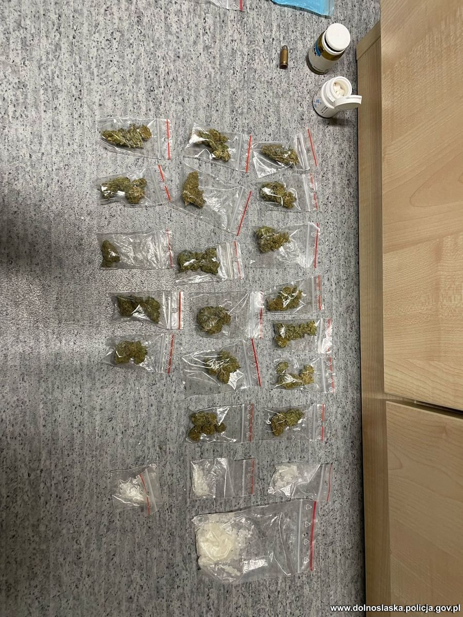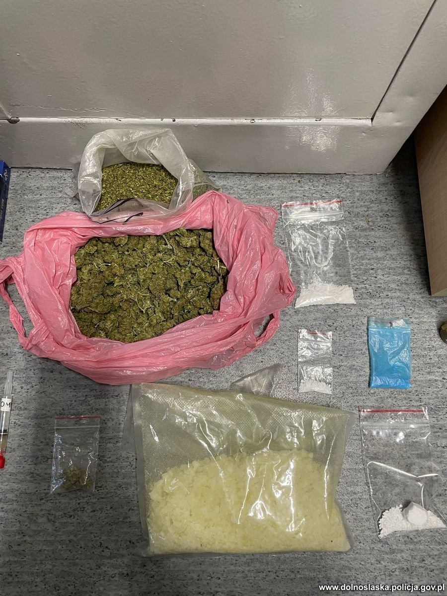 Podczas realizowania czynności przy mężczyźnie oraz w jego miejscu zamieszkania funkcjonariusze ujawnili blisko 400 gramów mefedronu, 10 gramów kokainy oraz ponad 4 gramy klefedronu. Dodatkowo zabezpieczono ponad 200 gramów marihuany, blisko 30 gramów grzybów halucynogennych, 2 sztuki tabletek Xanax oraz 102 tabletki nieznanego pochodzenia, które poddane zostaną dalszym badaniom.