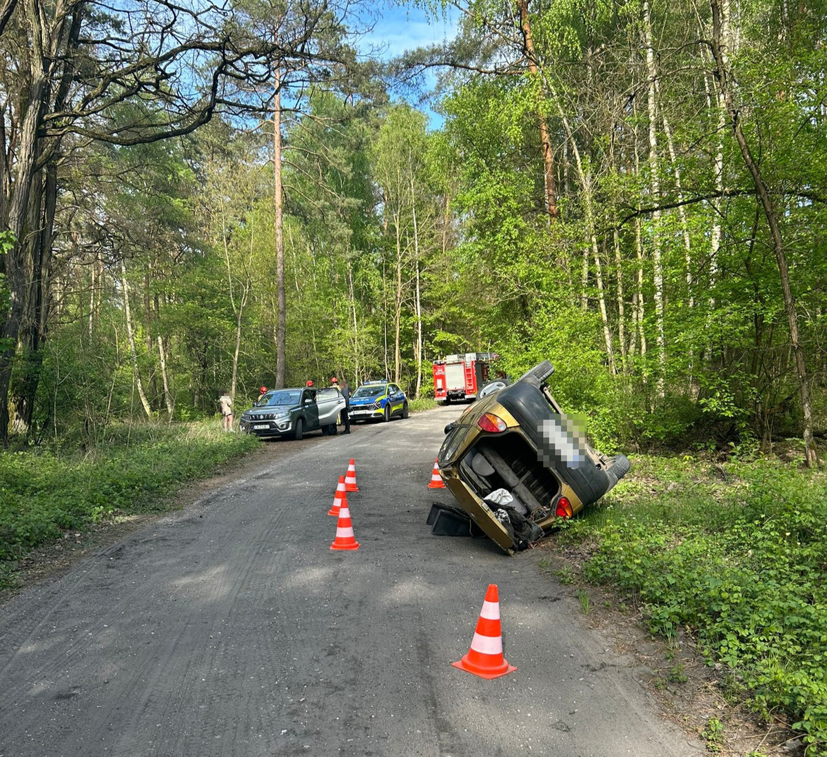 Pościg zakończył się po kilku kilometrach w m. Pomorzany, gdzie kierowca stracił panowanie nad pojazdem, w wyniku czego doszło do kolizji. Kierującym daewoo okazał się 18-latek z powiatu golubsko-dobrzyńskiego. Był trzeźwy, została mu pobrana krew do badań na zawartość środków narkotycznych w organizmie. Autem podróżowały z mężczyzną 3 osoby, które na szczęście nie odniosły poważnych obrażeń.