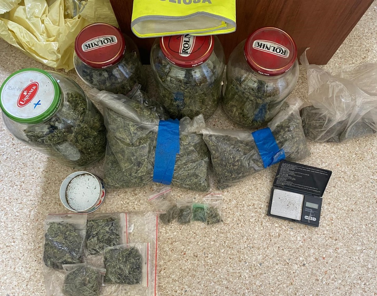 W minionym tygodniu policjanci z Myszyńca realizowali kolejną sprawę narkotykową. W trakcie jej prowadzenia ustalili, że w okolicach Warszawy mężczyzna może posiadać znaczne ilości narkotyków, do policyjnej akcji dołączyli również ostrołęccy kryminalni. Przeszukanie pomieszczeń zajmowanych przez mężczyznę potwierdziło tylko wersje mundurowych. Łącznie zabezpieczono prawie 2 kilogramy marihuany, a także gotówkę oraz wagę elektroniczną, która mogła służyć do porcjowania narkotyków. Czarnorynkowa wartość zabezpieczonych narkotyków, to blisko 90 tysięcy złotych.