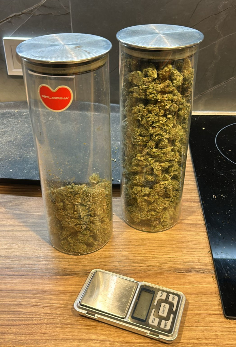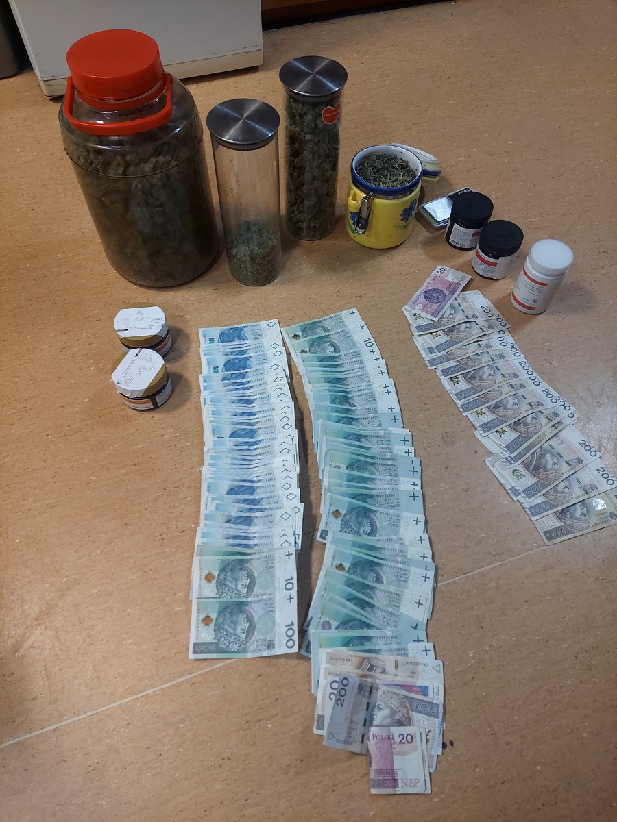 Około godziny 18:00 policjanci udali się pod znany im adres. Już w momencie zbliżania się do drzwi lokalu wyczuli intensywny zapach charakterystyczny dla marihuany. W mieszkaniu znajdował się 22-letni mężczyzna, w którego pokoju funkcjonariusze ujawnili trzy pojemniki z suszem roślinnym. Mężczyzna tłumaczył, że marihuana jest przeznaczona na własny użytek i jest to marihuana medyczna. Policjanci nie dali wiary tym tłumaczeniom.