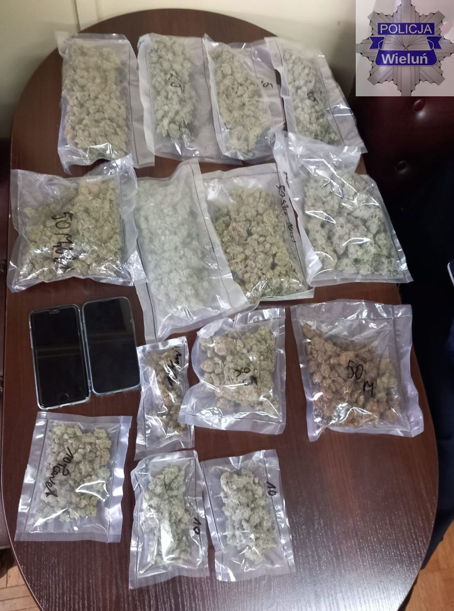 Wieluńscy kryminalni, prowadząc działania wymierzone w przestępczość narkotykową, wytypowali 26-latka podejrzewanego o udział w narkotykowym procederze. Mężczyzna został zatrzymany 17 maja 2025 roku na terenie gminy Skomlin, gdy podróżował samochodem marki BMW wraz z innym 26-latkiem. Podczas przeszukania pojazdu policjanci znaleźli kilkanaście woreczków z suszem roślinnym o wadze ponad 500 gramów – wstępne badania potwierdziły, że była to marihuana. Ustalono, że środki te należały do 26-letniego mieszkańca województwa dolnośląskiego. Drugi z mężczyzn posiadał elektroniczne papierosy zawierające THC. Obaj zostali zatrzymani.