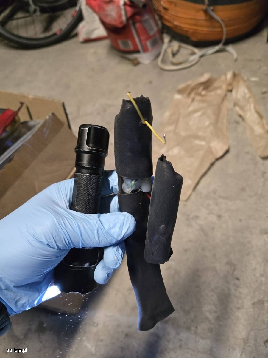 Akcja rozpoczęła się 17 maja 2025 roku, kiedy funkcjonariusze otrzymali informację o podejrzeniu posiadania przez jednego z mieszkańców powiatu niebezpiecznych materiałów. Policjanci szybko zorganizowali przeszukanie posesji mężczyzny, podczas którego odkryli urządzenie wybuchowe wykonane własnoręcznie. Składało się ono między innymi z metalowej rury oraz przewodów elektrycznych, a w jego wnętrzu znajdował się czarny proch — materiał pirotechniczny o wysokim stopniu niebezpieczeństwa.