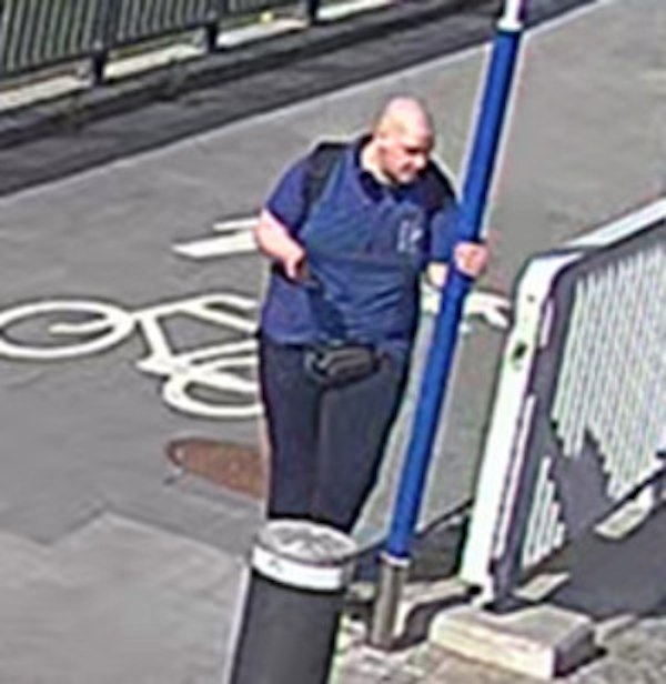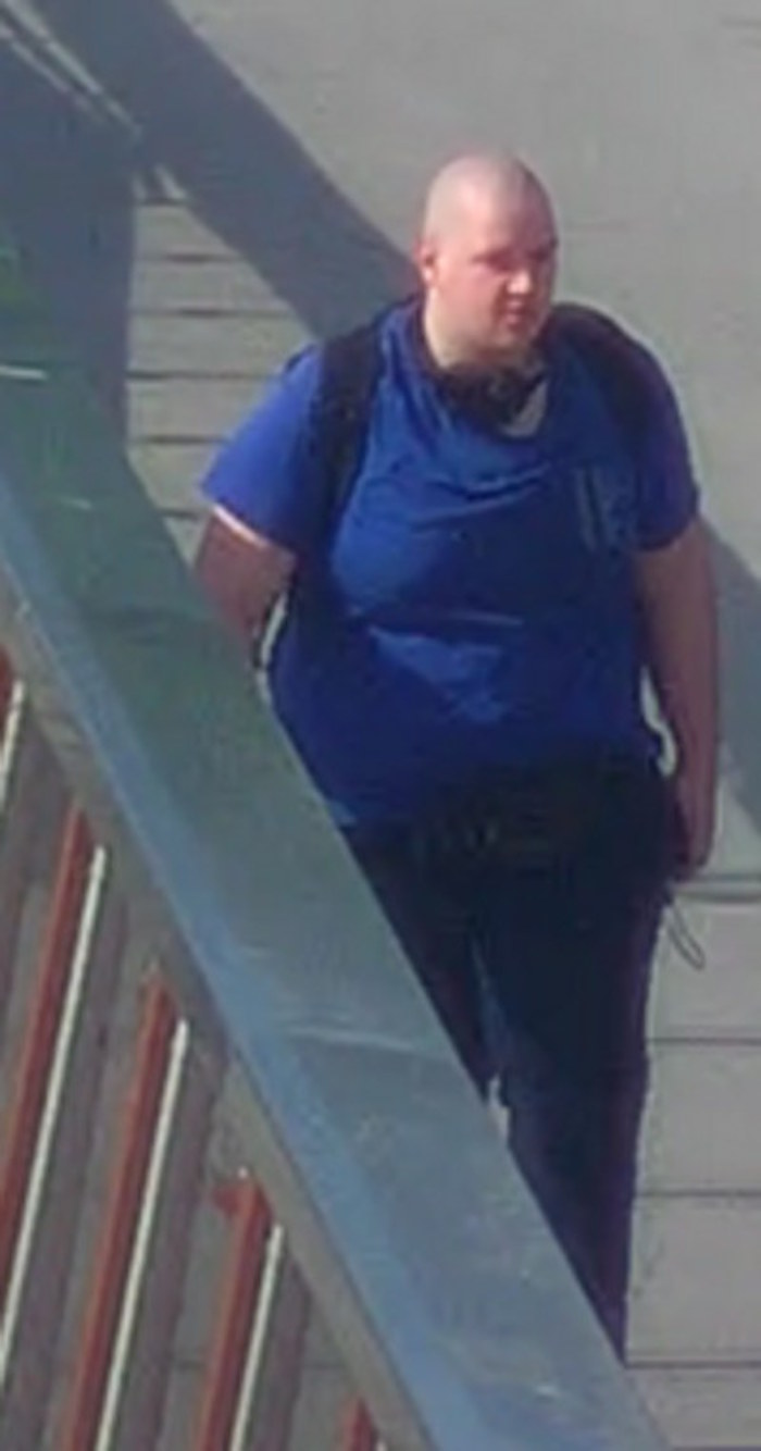 Mężczyzna widoczny na zdjęciu jest w wieku około 25–35 lat, ma ogoloną głowę i nie posiadał zarostu na twarzy. W chwili zdarzenia ubrany był w niebieską koszulkę z krótkim rękawem, ciemne spodnie oraz czarne buty. Niósł ze sobą czarny plecak w stylu militarnym.
