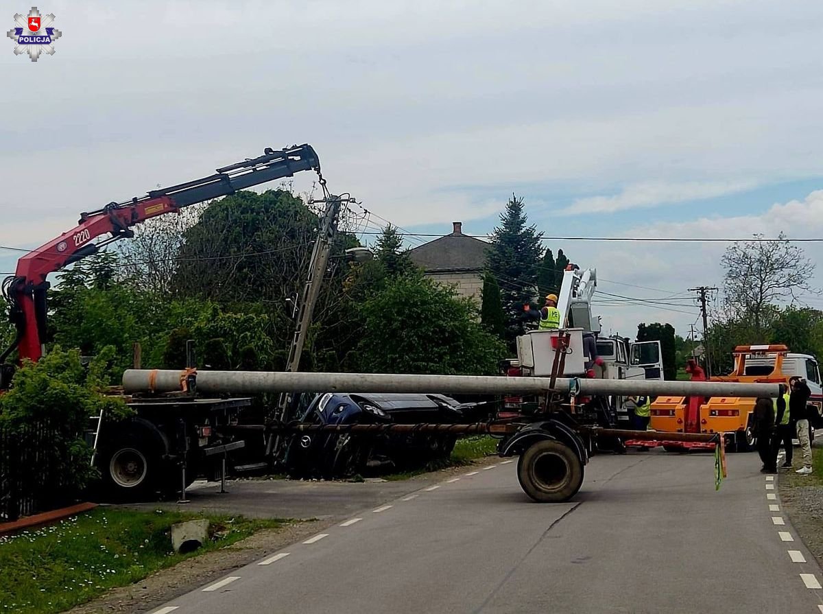 Pracownicy zakładu energetycznego przy użyciu specjalistycznych pojazdów wymienili słup na nowy. W tym czasie o bezpieczeństwo mieszkańców i podróżujących tamtędy dbali zamojscy policjanci.