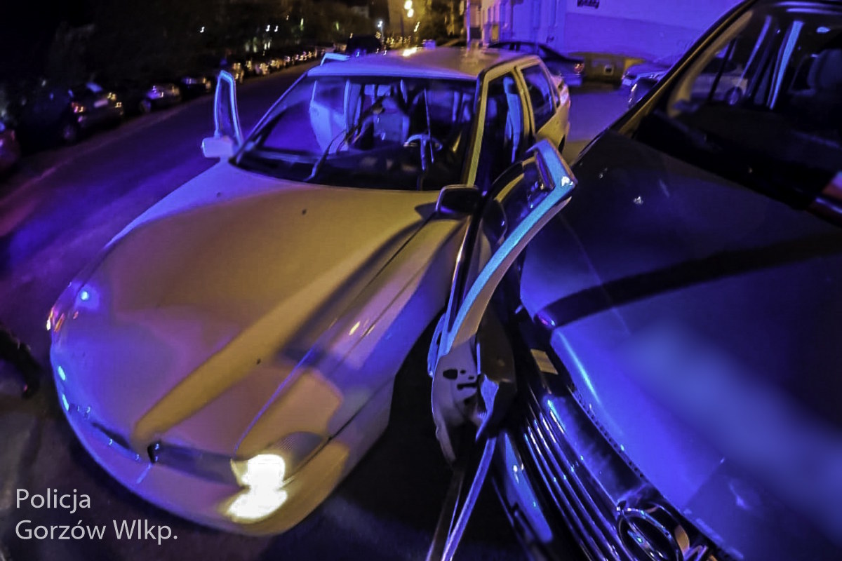 Funkcjonariusze drogówki pełniący nocną służbę w Gorzowie Wielkopolskim w piątek (30 maja), tuż przed godziną 1:00, zauważyli volvo skręcające z ul. Szarych Szeregów w ul. Kutrzeby. Gdy mundurowi podjęli próbę zatrzymania pojazdu, kierowca zignorował sygnały świetlne i dźwiękowe, po czym gwałtownie przyspieszył i zaczął uciekać. Na skrzyżowaniu z ul. Armii Krajowej uderzył w kilka zaparkowanych aut, dalszą jazdę uniemożliwili mu policjanci, którzy zajechali mu drogę, odebrali kluczyki i obezwładnili kierowcę.