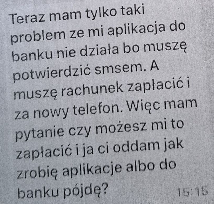 Z fałszywego konta przyszła dramatyczna wiadomość: „Mamo, telefon wpadł mi do ubikacji, nie działa. Potrzebuję pilnie pieniędzy na nowy, przelej 3995 zł na konto mojego znajomego!”. Kobieta, przekonana, że pisze do niej córka, natychmiast wysłała pieniądze.