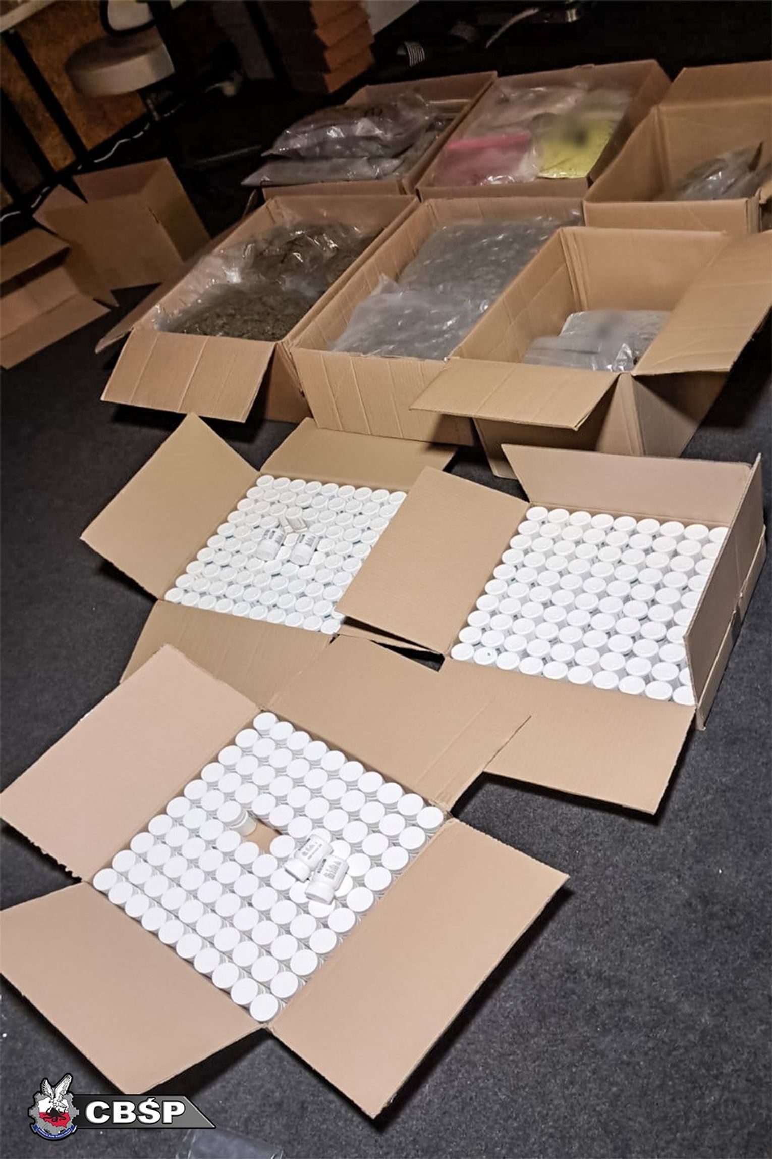 Na miejscu odkryto także nielegalne laboratorium, w którym jeden z podejrzanych produkował amfetaminę. Podczas przeszukań w wytypowanych lokalizacjach funkcjonariusze zabezpieczyli ponad 38 kilogramów narkotyków, w tym marihuanę, haszysz, amfetaminę, klofedron i mefedron. Zabezpieczono także niemal 10 tysięcy tabletek MDMA oraz ponad 15 tysięcy tabletek Xanax. Czarnorynkowa wartość zabezpieczonych substancji przekracza 2 miliony złotych.