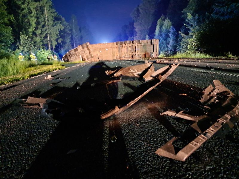 Kierowca ciężarówki próbował uniknąć zderzenia, zjeżdżając na pobocze, jednak zestaw przewrócił się, a drewno rozsypało się na jezdni, całkowicie blokując drogę. Utrudnienia trwały do godziny 4:00 rano.