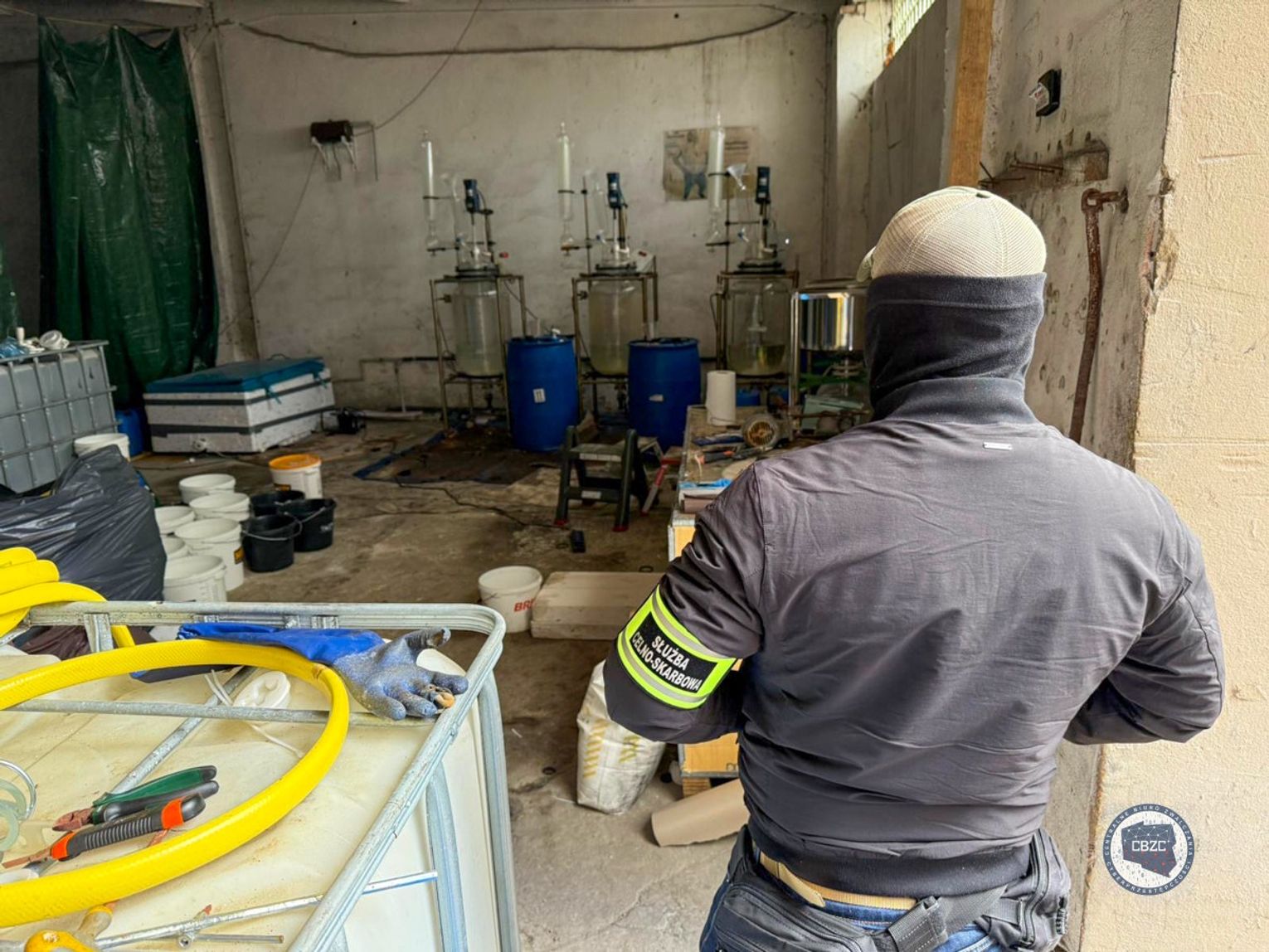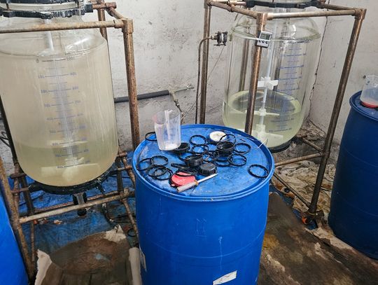 W ramach szeroko zakrojonych działań, realizowanych wspólnie z funkcjonariuszami Pomorskiego Urzędu Celno-Skarbowego, WIOŚ, policjantami z KPP w Kętrzynie, ekspertami z laboratoriów KWP w Białymstoku i Olsztynie oraz chemikami Państwowej Straży Pożarnej, ujawniono prowizoryczne laboratorium wyposażone w specjalistyczną linię produkcyjną do wytwarzania substancji psychotropowych. W kontenerach morskich zabezpieczono około 5 ton odczynników i substancji chemicznych – zarówno w formie cieczy niebezpiecznych dla zdrowia, jak i proszków. U jednego z zatrzymanych znaleziono również nielegalnie posiadaną broń palną.