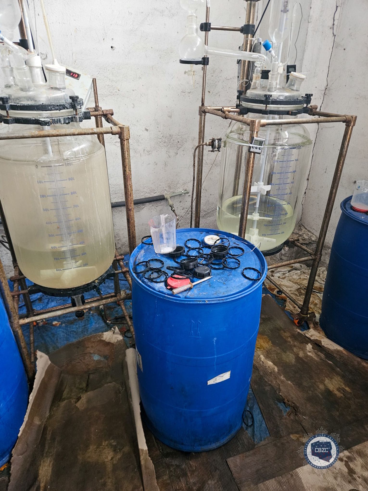 W połowie kwietnia br. funkcjonariusze Centralnego Biura Zwalczania Cyberprzestępczości z Poznania oraz Centralnego Biura Śledczego Policji z Łodzi, wspierani przez policjantów Samodzielnych Pododdziałów Kontrterrorystycznych z Olsztyna i Gdańska, zatrzymali w miejscowości Barciany (woj. warmińsko-mazurskie) członków zorganizowanej grupy przestępczej zajmującej się produkcją środków psychotropowych.
