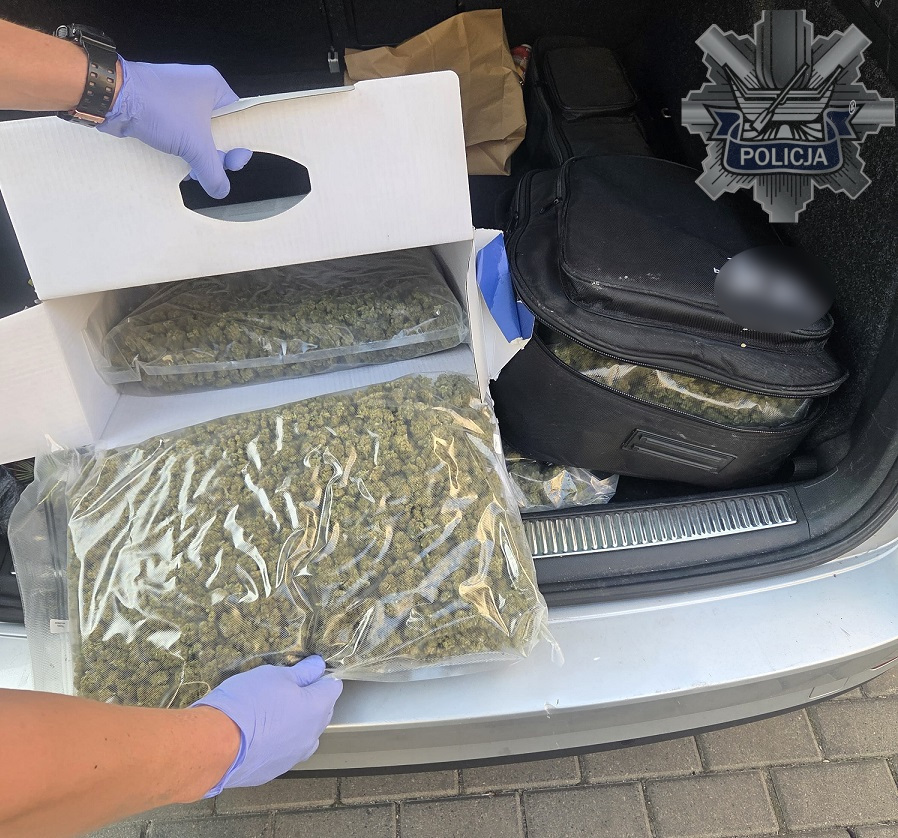 Do pierwszego zatrzymania doszło 3 czerwca 2025 roku przy ul. Drewnowskiej w Łodzi. 26-latek, wcześniej notowany, siedział w aucie, z którego – jak relacjonują funkcjonariusze – „wydobywał się silny zapach marihuany”. Mężczyzna przyznał, że w bagażniku przewozi 5 kg różnych narkotyków, w tym marihuanę, mefedron i kokainę. Część z nich była ukryta w pokrowcu na gitarę. Policjanci znaleźli przy nim klucze, które doprowadziły ich do mieszkania z kolejnymi 25 kg środków odurzających.