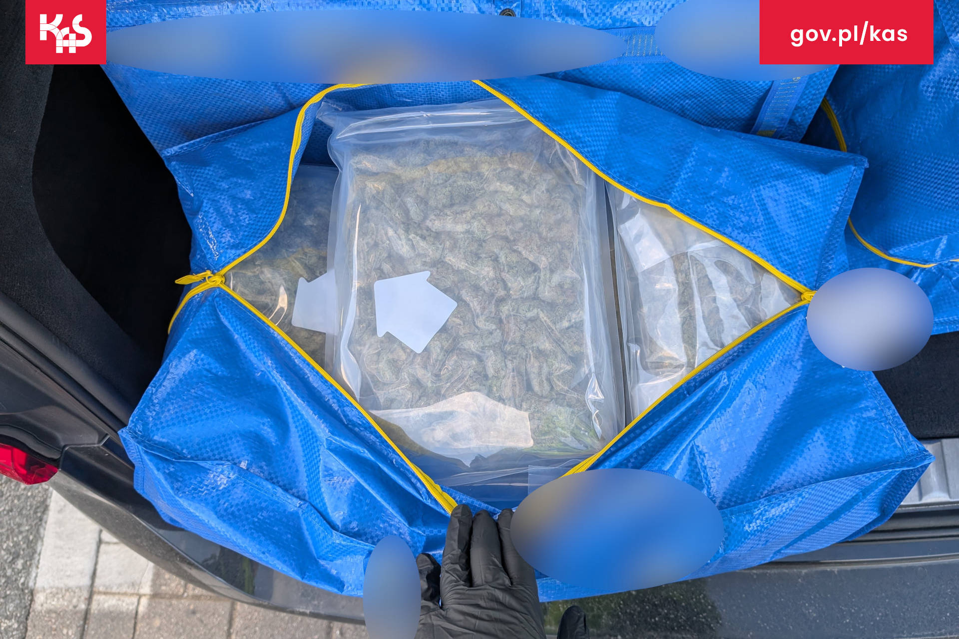 Funkcjonariusze Służby Celno-Skarbowej z Wielkopolskiego Urzędu Celno-Skarbowego podczas kontroli na autostradzie A2 ujawnili w samochodzie osobowym 38 kg marihuany. Narkotyk był ukryty w torbach na tylnym siedzeniu oraz w bagażniku pojazdu.