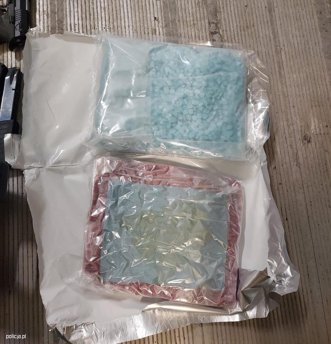 Równolegle przeszukano posesję 39-latka w gminie Czerwonak, do którego miał trafić nielegalny towar. Policjanci przejęli tam kolejne 3,5 kilograma MDMA, niewielką ilość marihuany, gotówkę i telefon.