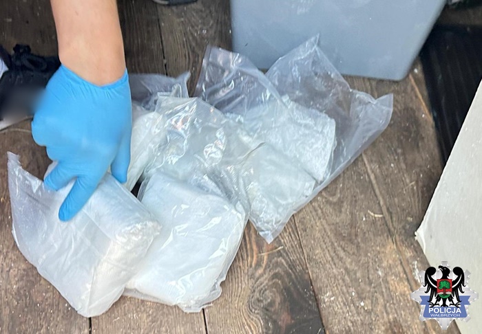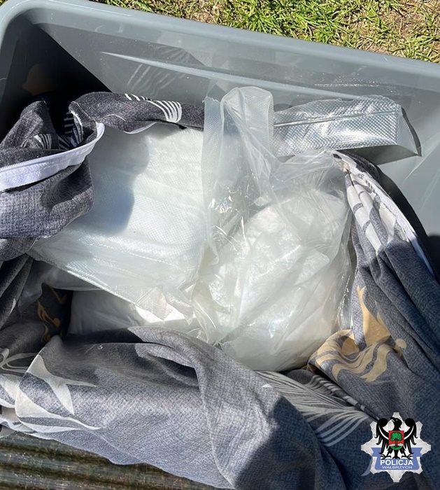 Dalsze działania operacyjne, prowadzone przez kryminalnych z Komendy Miejskiej Policji w Wałbrzychu przy wsparciu funkcjonariuszy z Głuszycy oraz przewodnika psa tropiącego z komendy w Dzierżoniowie, doprowadziły do posesji podejrzanego w Jedlinie-Zdroju. W ogrodowej altanie policjanci odnaleźli skrzynkę z 4,5 kg amfetaminy i metamfetaminy – starannie zapakowanej i gotowej do sprzedaży. Łącznie zabezpieczono blisko 5 kilogramów substancji psychotropowych.