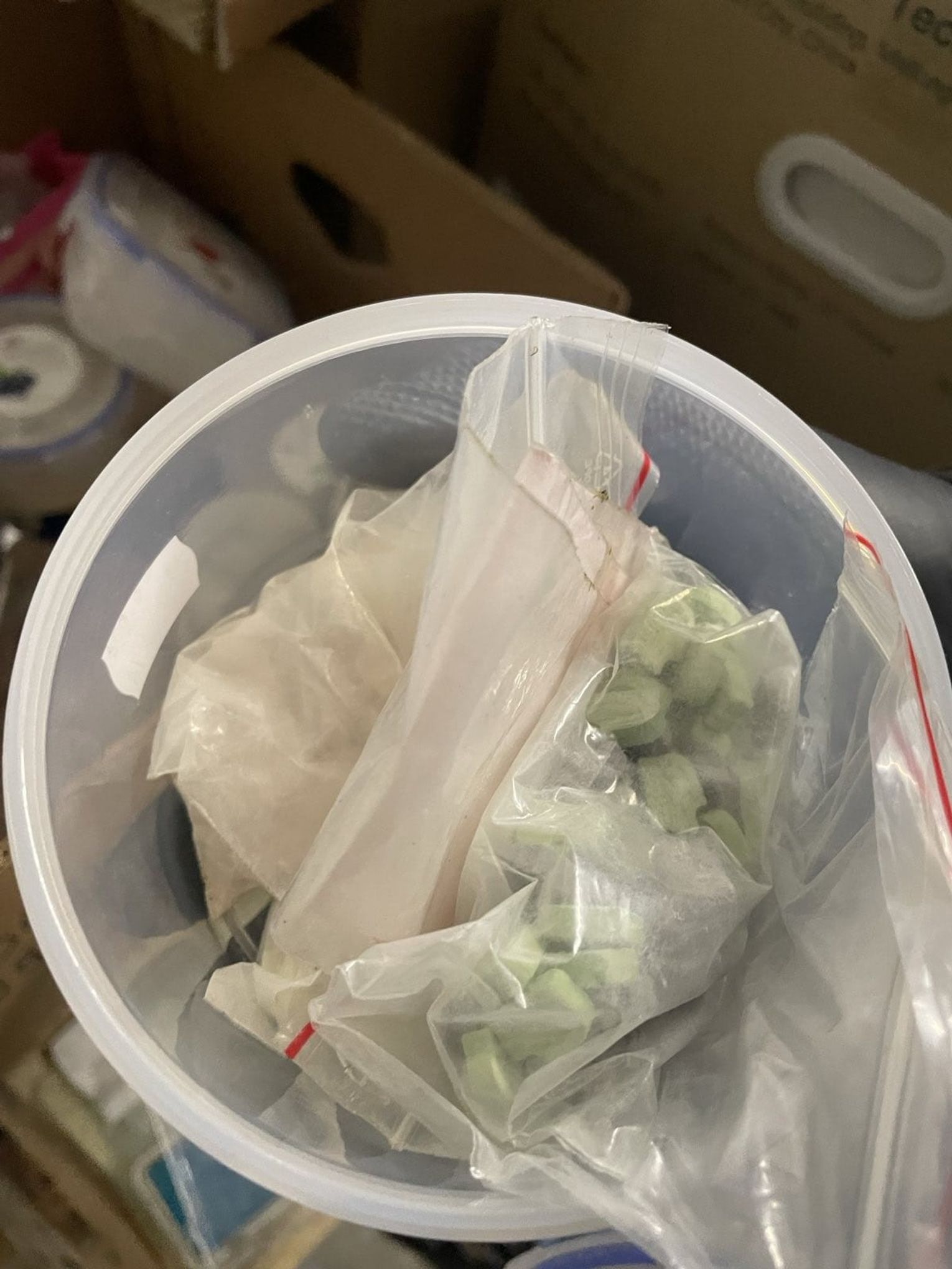 W trakcie przeszukania wynajmowanego garażu, pełniącego rolę magazynu, funkcjonariusze zabezpieczyli niemal kilogram marihuany, znaczne ilości amfetaminy, mefedronu oraz tabletki MDMA i ecstasy.