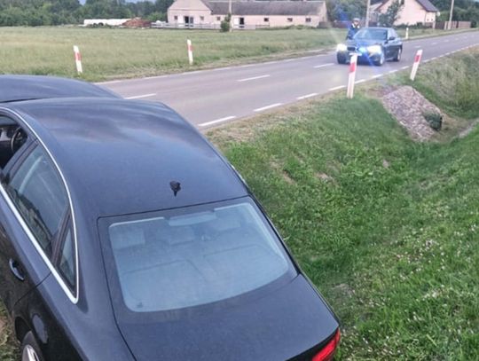 We wtorek, 24 czerwca, tuż przed godziną 21, dyżurny Komendy Miejskiej Policji w Łomży otrzymał zgłoszenie o aucie leżącym w rowie przy ulicy Nowogrodzkiej w Miastkowie. Na miejsce skierowano patrol ruchu drogowego, który ustalił, że 32-letni kierowca audi najprawdopodobniej nie dostosował prędkości do warunków na drodze, stracił panowanie nad pojazdem i wjechał do rowu. Z relacji świadków wynikało, że mężczyzna próbował skręcić w drogę gruntową prowadzącą do jego posesji, lecz nie trafił w zjazd.