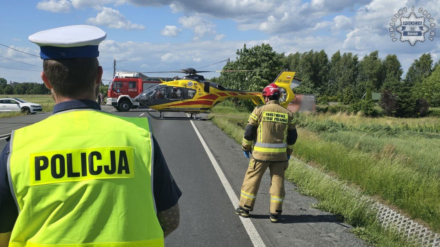 Kierujący audi doznał poważnych obrażeń i w stanie zagrażającym życiu został przetransportowany śmigłowcem Lotniczego Pogotowia Ratunkowego do szpitala.