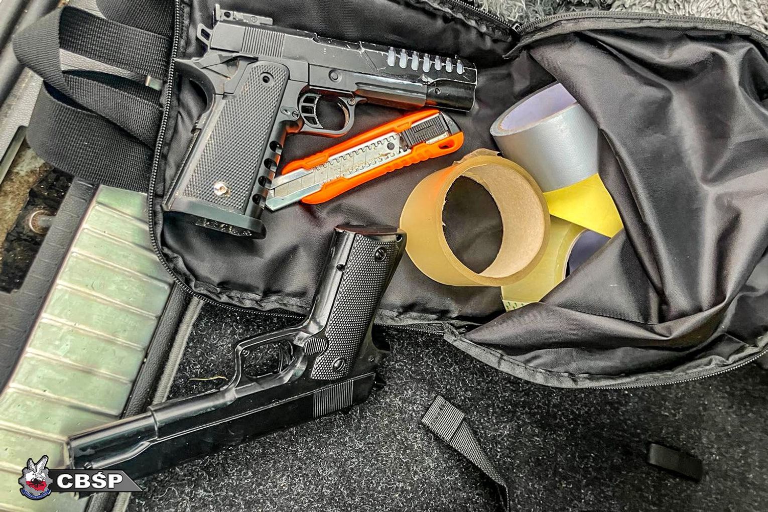Podczas przeszukań zabezpieczono m.in. atrapy broni palnej, kominiarki, taśmy klejące oraz telefony komórkowe. W jednym z urządzeń znajdowało się zdjęcie ofiary oraz wiadomości w języku francuskim. W domu jednej z zatrzymanych osób odnaleziono telefon należący do ofiary oraz kolejne maskujące akcesoria i kartę SIM.