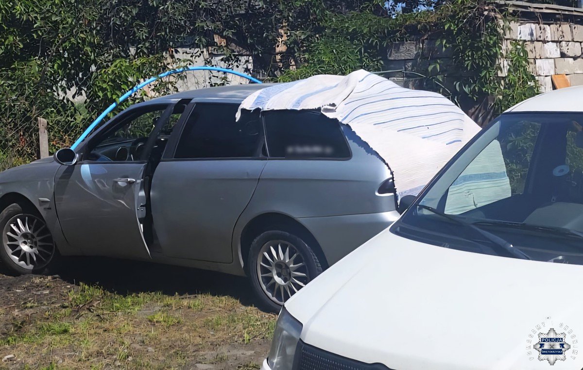 Policjanci ruszyli w pościg, używając sygnałów świetlnych i dźwiękowych. Mimo to uciekinier nie reagował. Po chwili stracili go z oczu, ale nie przerwali działań. Trop doprowadził ich na jedną z posesji. Tam, pod białą narzutą, znaleźli poszukiwany samochód. Właścicielka posesji próbowała tłumaczyć się "bajeczną" historią, jednak funkcjonariusze postanowili sprawdzić również zabudowania.