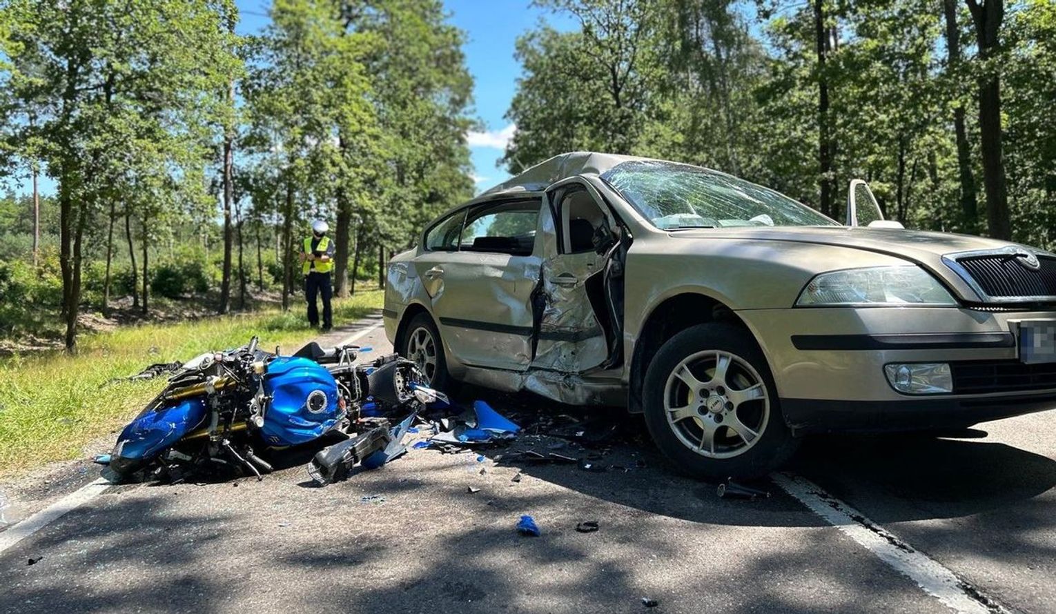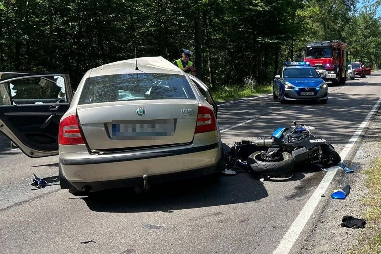 Do wypadku doszło kilka minut po godzinie 10:00 na drodze krajowej nr 63 w miejscowości Stasinów, w gminie Radzyń Podlaski. Ze wstępnych ustaleń policjantów pracujących na miejscu zdarzenia wynika, że 41-letnia mieszkanka Radzynia Podlaskiego, kierująca samochodem osobowym marki Skoda Octavia, cofając z drogi gruntowej na DK-63, nie ustąpiła pierwszeństwa przejazdu 28-letniemu motocykliście kierującemu motocyklem marki Suzuki GSX 750. Motocyklista to mieszkaniec powiatu wołomińskiego.