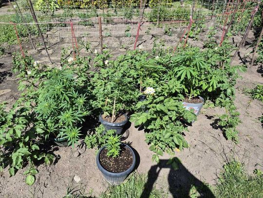 Dalsze czynności objęły przeszukania miejsc zamieszkania podejrzanych. Na terenie posesji należącej do 49-letniego obywatela Ukrainy funkcjonariusze odkryli nielegalną uprawę konopi indyjskich. Rośliny znajdowały się na grządkach w przydomowym ogródku i zostały zabezpieczone do dalszych badań.