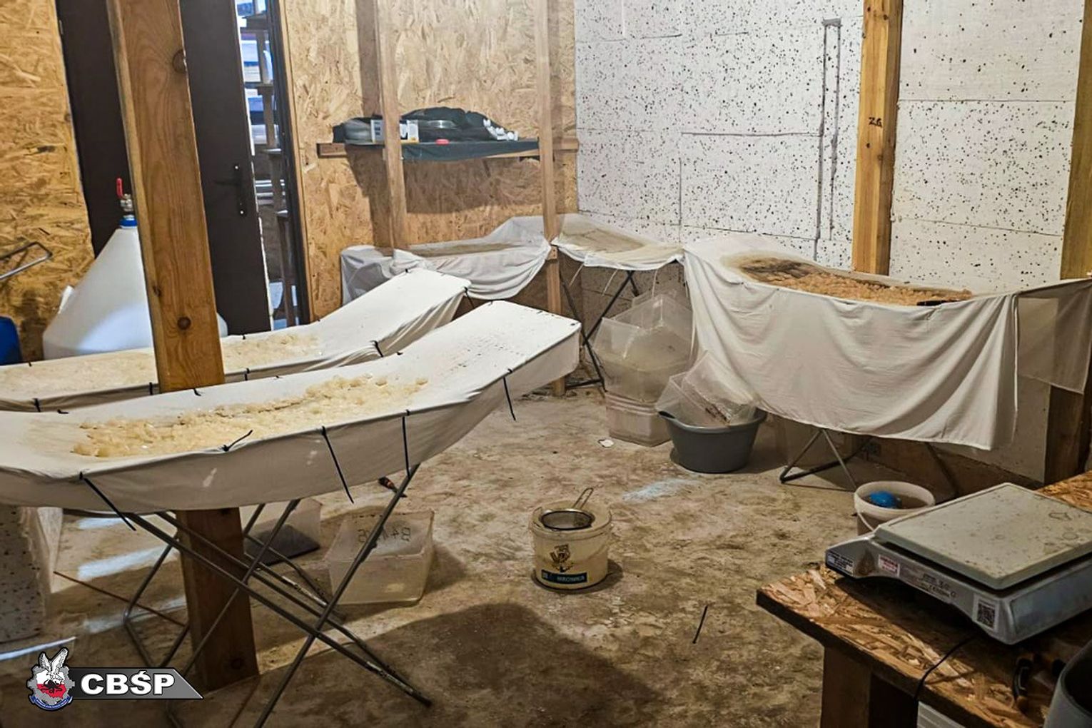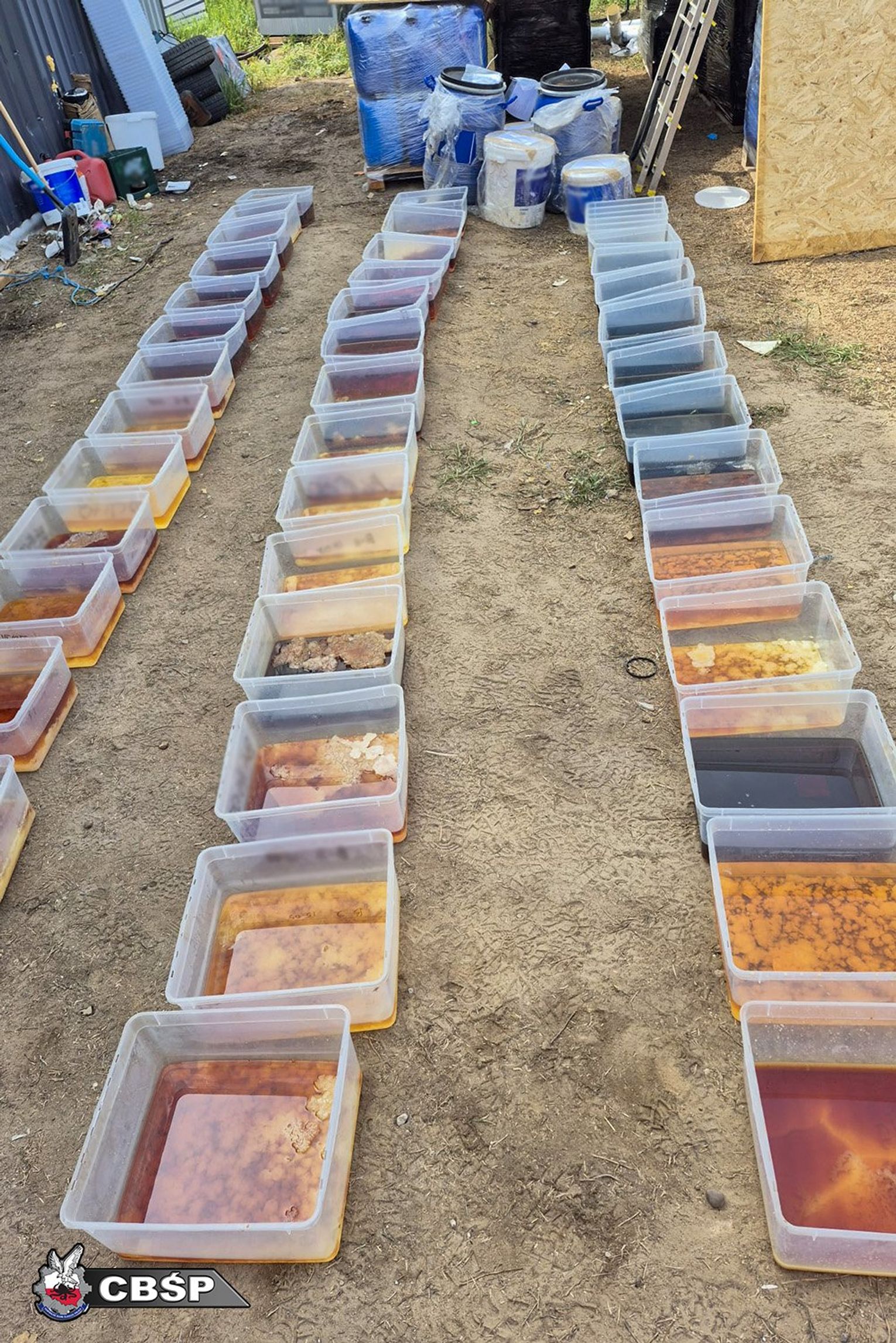 Równolegle funkcjonariusze przeprowadzili działania w miejscowości Osiek Wielki, gdzie na prywatnej posesji zabezpieczono około 1,5 kg gotowego narkotyku, substancje chemiczne i aparaturę. W tym miejscu zatrzymano 34-latka nadzorującego produkcję.