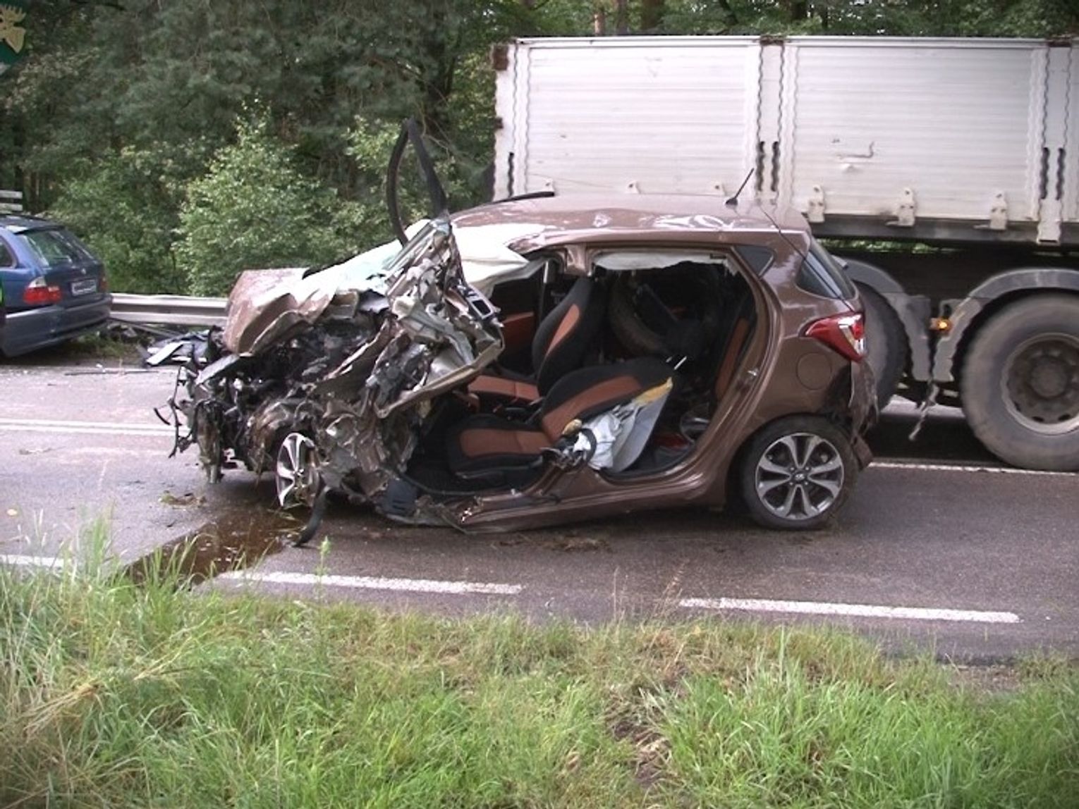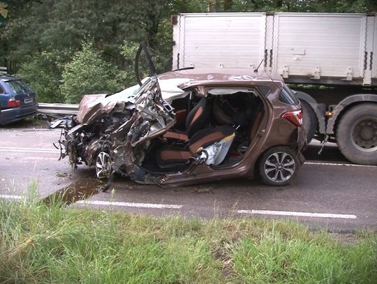 Hyundaiem podróżowały dwie kobiety z powiatu wołomińskiego. Niestety, 60-letnia kierująca zginęła na miejscu. 36-letnia pasażerka z obrażeniami ciała została przewieziona do szpitala. BMW kierował 47-letni mieszkaniec powiatu warszawskiego. Mężczyzna nie odniósł obrażeń. Zarówno on, jak i kierowca ciężarówki byli trzeźwi.