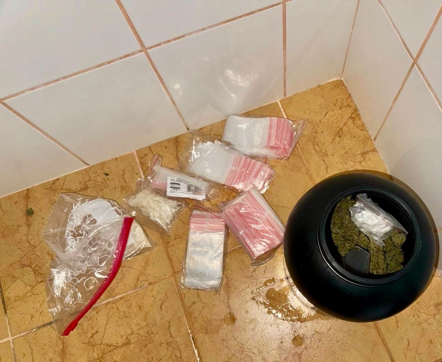 Policjanci natychmiast podjęli działania operacyjne, które doprowadziły ich do jednego z okolicznych ośrodków wypoczynkowych. W wynajmowanym pokoju zastali trzech młodych mężczyzn. W trakcie przeszukania ujawnili 1656 porcji substancji psychoaktywnych, 110 porcji narkotyków, przedmiot przypominający broń palną, pałkę teleskopową oraz ok. 4,5 tys. zł w gotówce.