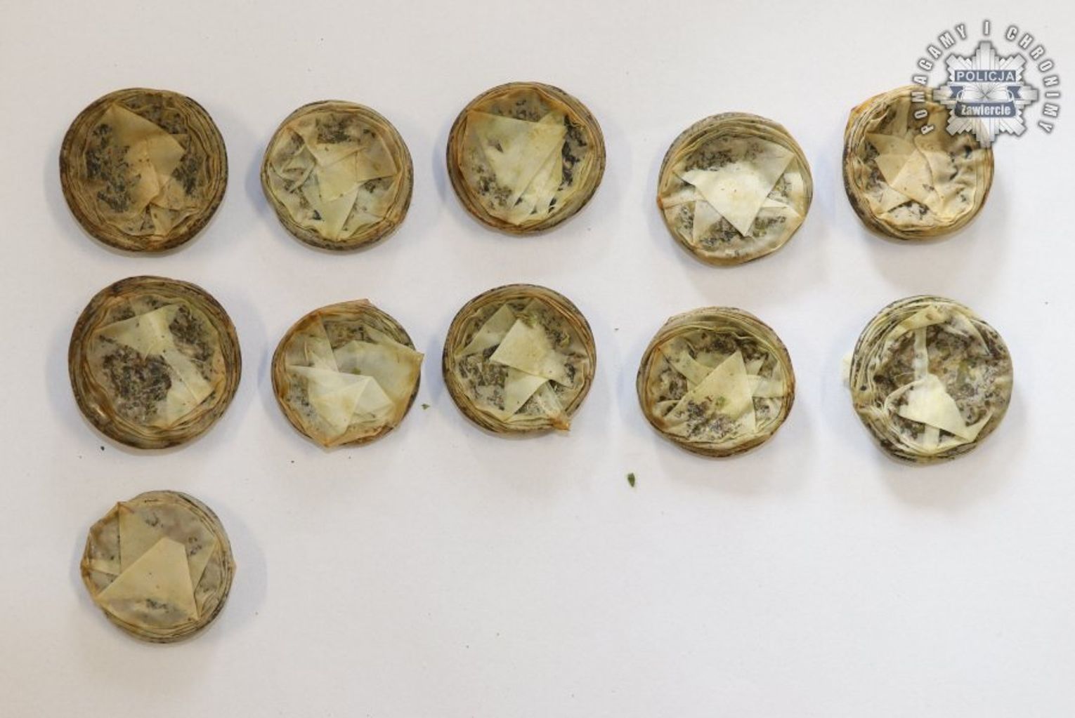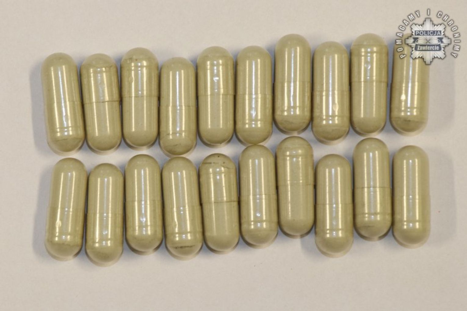 W nocy z soboty na niedzielę policjanci z Łaz, patrolując rejon Niegowonic, zauważyli na polanie przy ul. Okrężnej zaparkowany samochód dostawczy. W pojeździe nikogo nie było, jednak po chwili do auta podeszło dwóch mężczyzn. Jeden z nich przyznał, że jest właścicielem pojazdu. Już podczas kontroli 26-latek zaczął zachowywać się nerwowo - przy sobie miał dwie różowe tabletki, a w samochodzie funkcjonariusze znaleźli kolejne zakazane substancje: susz roślinny oraz brązową, zbryloną masę w pojemnikach i woreczku.