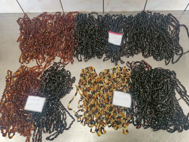 Podczas kontroli funkcjonariusze ujawnili w kieszeniach Rosjan bursztynowe korale. Szczegółowa rewizja pojazdu i bagaży, przeprowadzona wspólnie z celnikami, ujawniła łącznie 230 sztuk bursztynowych naszyjników – 120 należało do kierowcy, 70 do jego syna, a 40 do pasażerki. Łączna wartość ujawnionego towaru została oszacowana na blisko 11 tysięcy złotych.