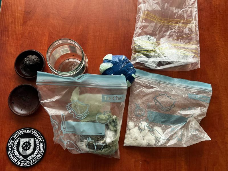 Podczas przeszukania mieszkania funkcjonariusze odkryli jednak znacznie więcej. Łącznie zabezpieczono ponad 224 gramy amfetaminy – ilość wystarczającą do przygotowania około 460 porcji handlowych – oraz ponad 253 gramy haszyszu, co mogłoby przełożyć się na blisko 1500 porcji. Dodatkowo policjanci odkryli cztery rośliny konopi indyjskich, a także akcesoria i opakowania świadczące o przygotowaniu do dystrybucji narkotyków.