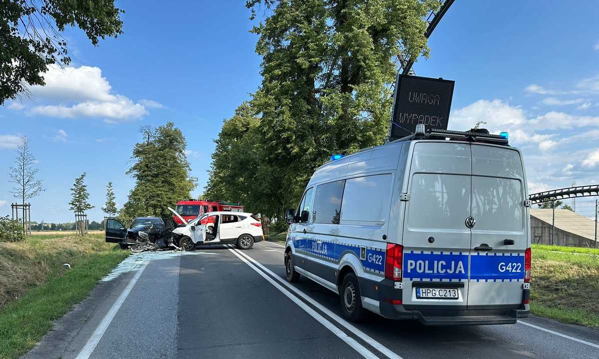 Do wypadku doszło 20 lipca, około godziny 15:30. Zderzenie było na tyle poważne, że obydwa samochody miały zmiażdżone przody, w tym bloki silników. Za kierownicą mercedesa siedział 44-latek z województwa pomorskiego. Razem z nim podróżowała 39-letnia kobieta, która została ranna i wymagała pomocy medycznej. Ratownicy przewieźli ją do szpitala.