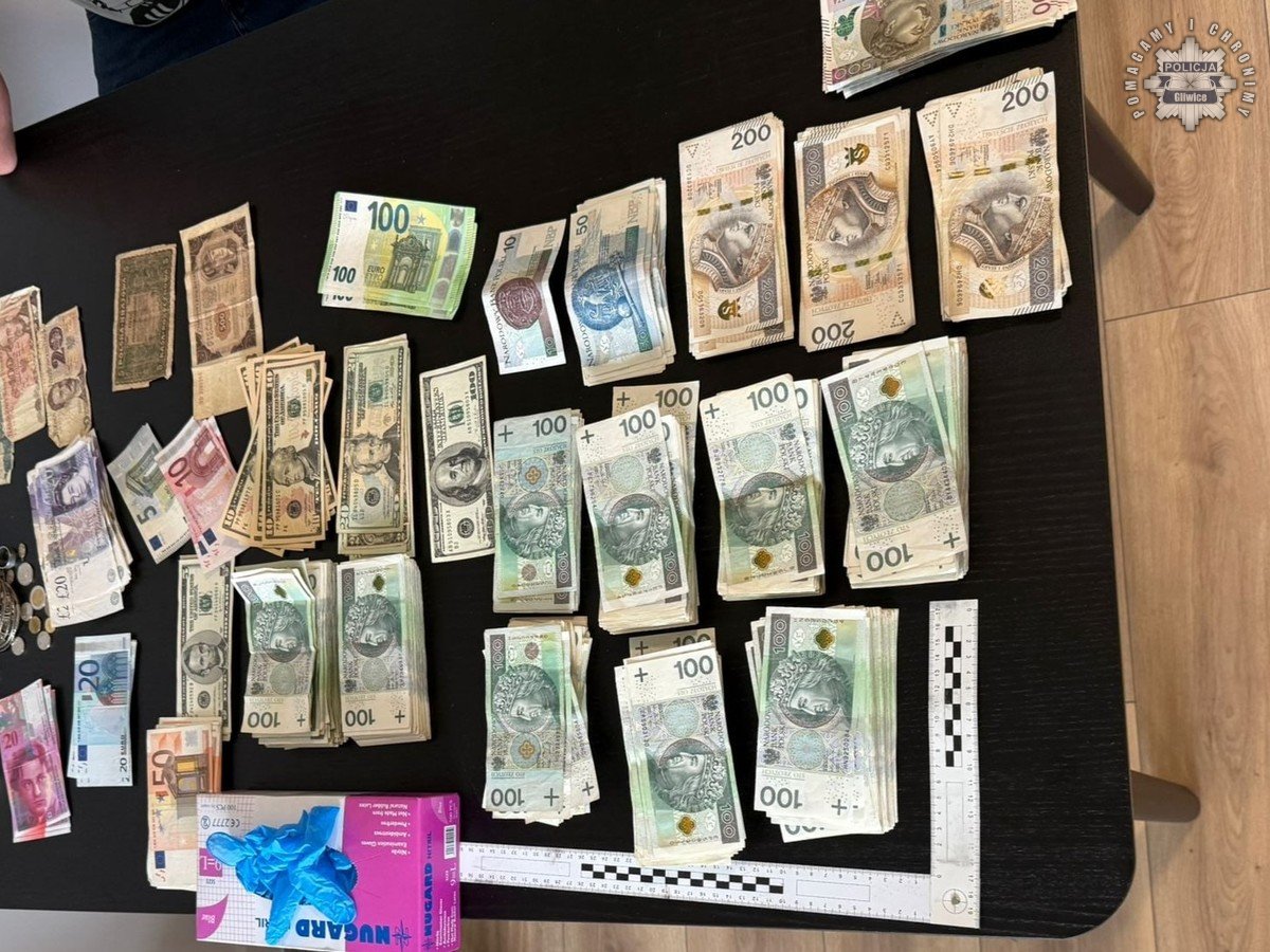 Obaj mężczyźni byli poszukiwani – młodszy w celu odbycia kary roku i ośmiu miesięcy więzienia, starszy – dwóch lat. W jednym z lokali, do których dotarli policjanci, ujawniono znaczne ilości gotówki w różnych walutach (PLN, EUR, USD, GBP, CHF), a także biżuterię, zegarki i telefony komórkowe.