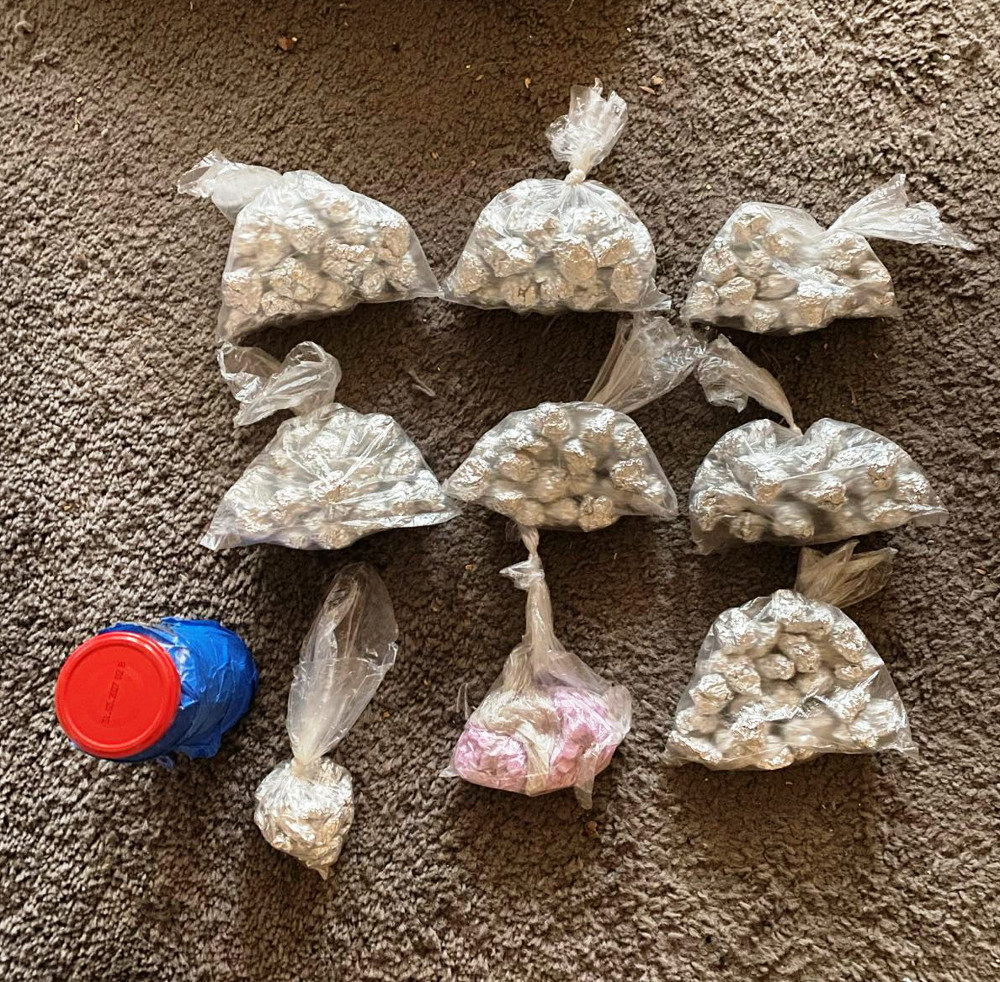 W trakcie akcji policjanci dokładnie przeszukali podwórze oraz znajdujący się tam pustostan. Doświadczenie w lokalizowaniu skrytek wykorzystywanych przez dilerów pozwoliło funkcjonariuszom odkryć zabronione substancje w jednym z pomieszczeń. W piecyku kaflowym znaleźli sześć woreczków, w których było blisko 200 aluminiowych zawiniątek oraz słoik z białym proszkiem.