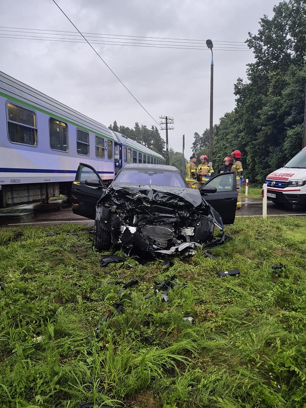 W poniedziałek około godziny 20:00 policjanci interweniowali na miejscu kolizji, do której doszło na przejeździe kolejowym we Wrześciu (gmina Wicko). 47-letni kierowca BMW, mieszkaniec Warszawy, zignorował znak „STOP” i wjechał na tory wprost pod nadjeżdżający pociąg. Samochód uderzył w pierwszy wagon składu, a siła zderzenia zniszczyła przód pojazdu i uruchomiła poduszki powietrzne, które najprawdopodobniej uratowały życie kierowcy oraz 41-letniej pasażerki. Na szczęście nikt nie odniósł poważnych obrażeń. Zarówno kierowca, jak i maszynista byli trzeźwi. Za spowodowanie zagrożenia bezpieczeństwa w ruchu drogowym 47-latek został ukarany mandatem w wysokości 5000 zł oraz 10 punktami karnymi.