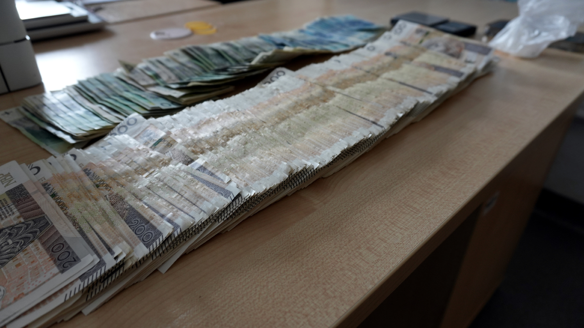 Przełom nastąpił podczas przeszukania jego mieszkania. W kuchennej szafce z przyprawami policjanci odkryli blisko 30 gramów kokainy. Mężczyzna przyznał się do jej posiadania, twierdząc, że znalazł ją przypadkowo dzień wcześniej. W trakcie dalszych czynności zabezpieczono także niemal 100 tysięcy złotych w różnych walutach – w tym euro i dolary – które mogą pochodzić z działalności narkotykowej.