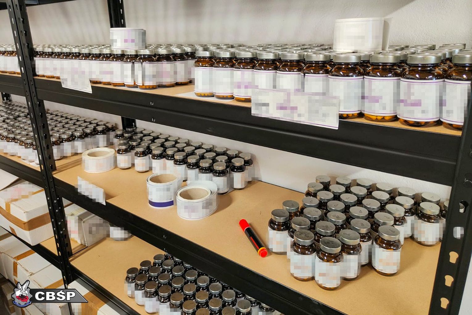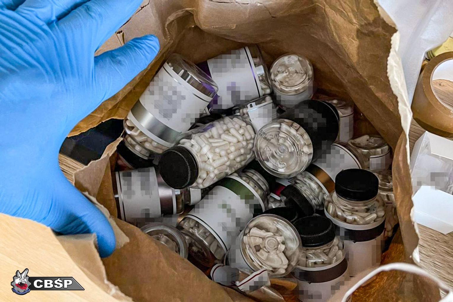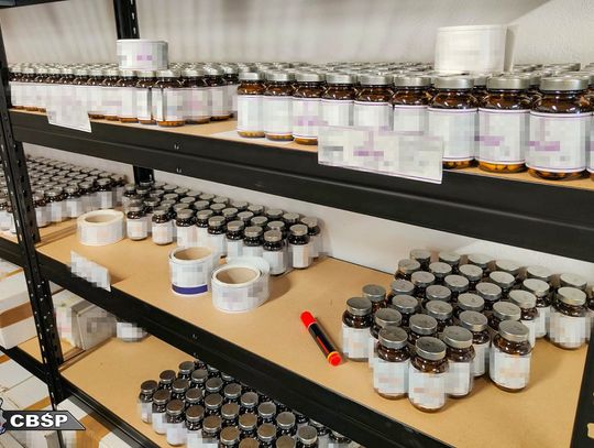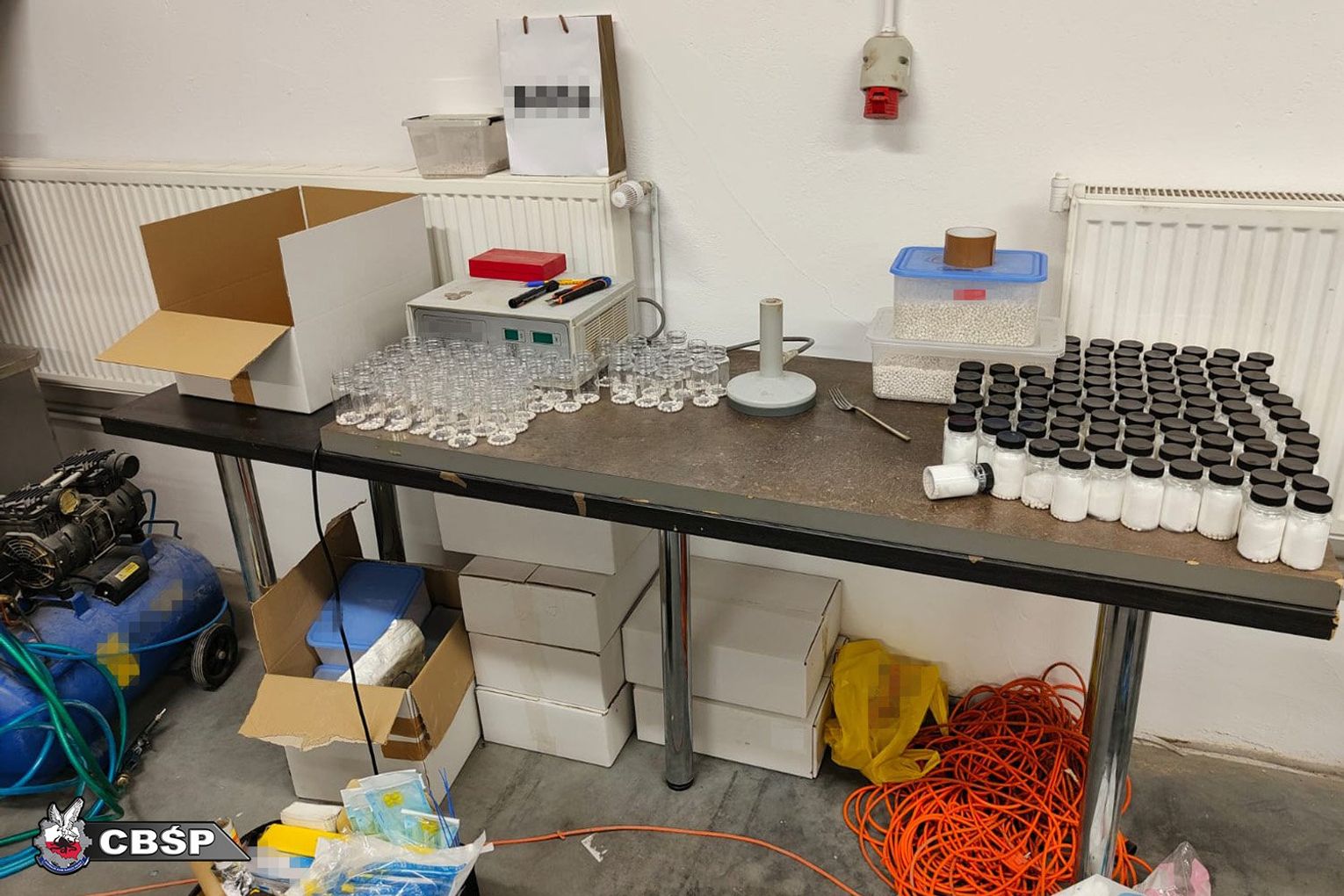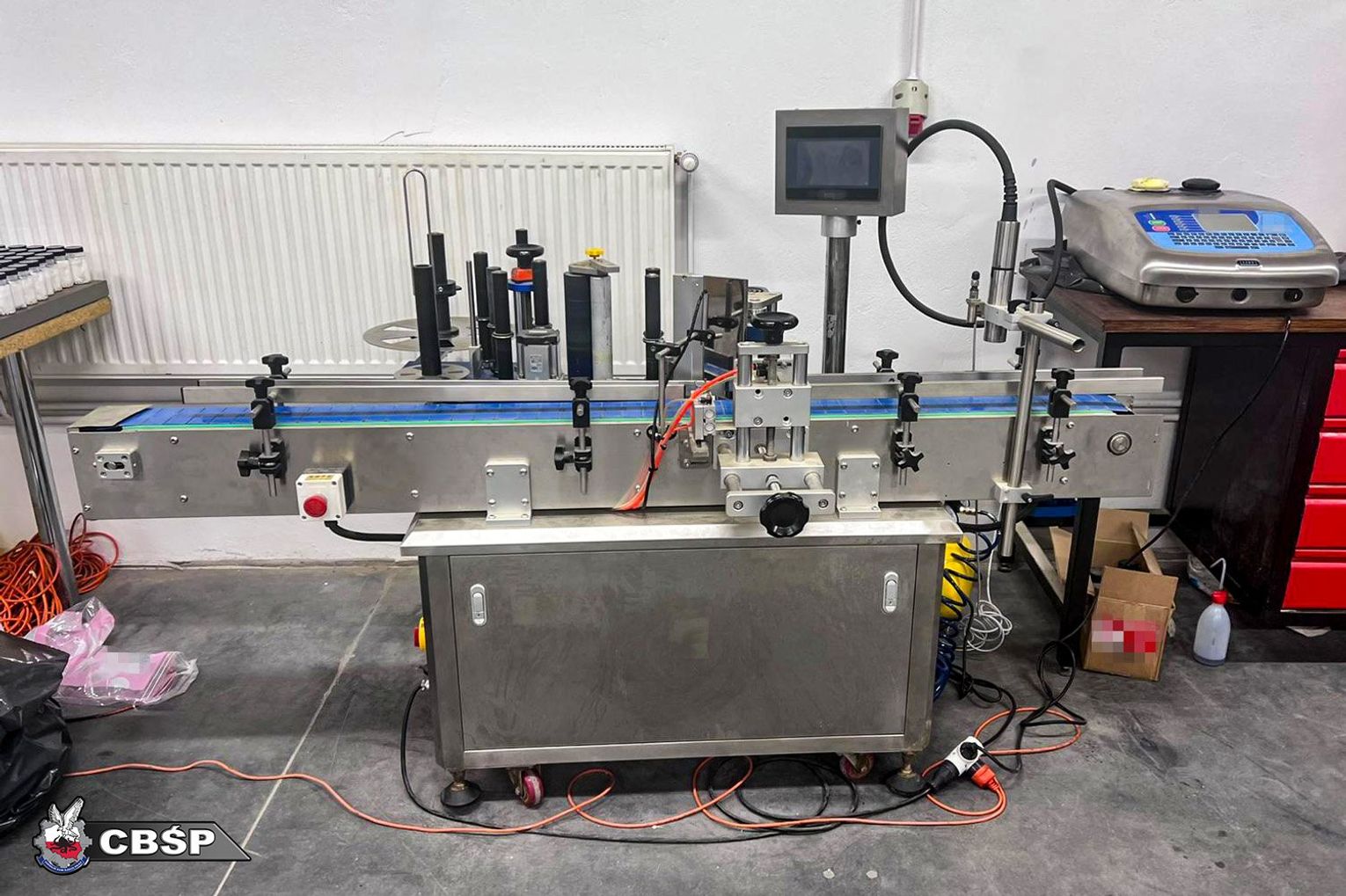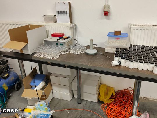 Podczas akcji policjanci przejęli pięć specjalistycznych maszyn, m.in. tabletkarki, wirówki i urządzenie do napełniania ampułek, a także tysiące opakowań gotowych do wysyłki. Na miejscu znaleziono też magazyn pełen półproduktów, kokainę, marihuanę i klefedron. Zabezpieczono luksusowe BMW, kolekcję zegarków i 90 tys. zł w gotówce. Łączna wartość przejętego mienia – ponad 250 tys. zł.