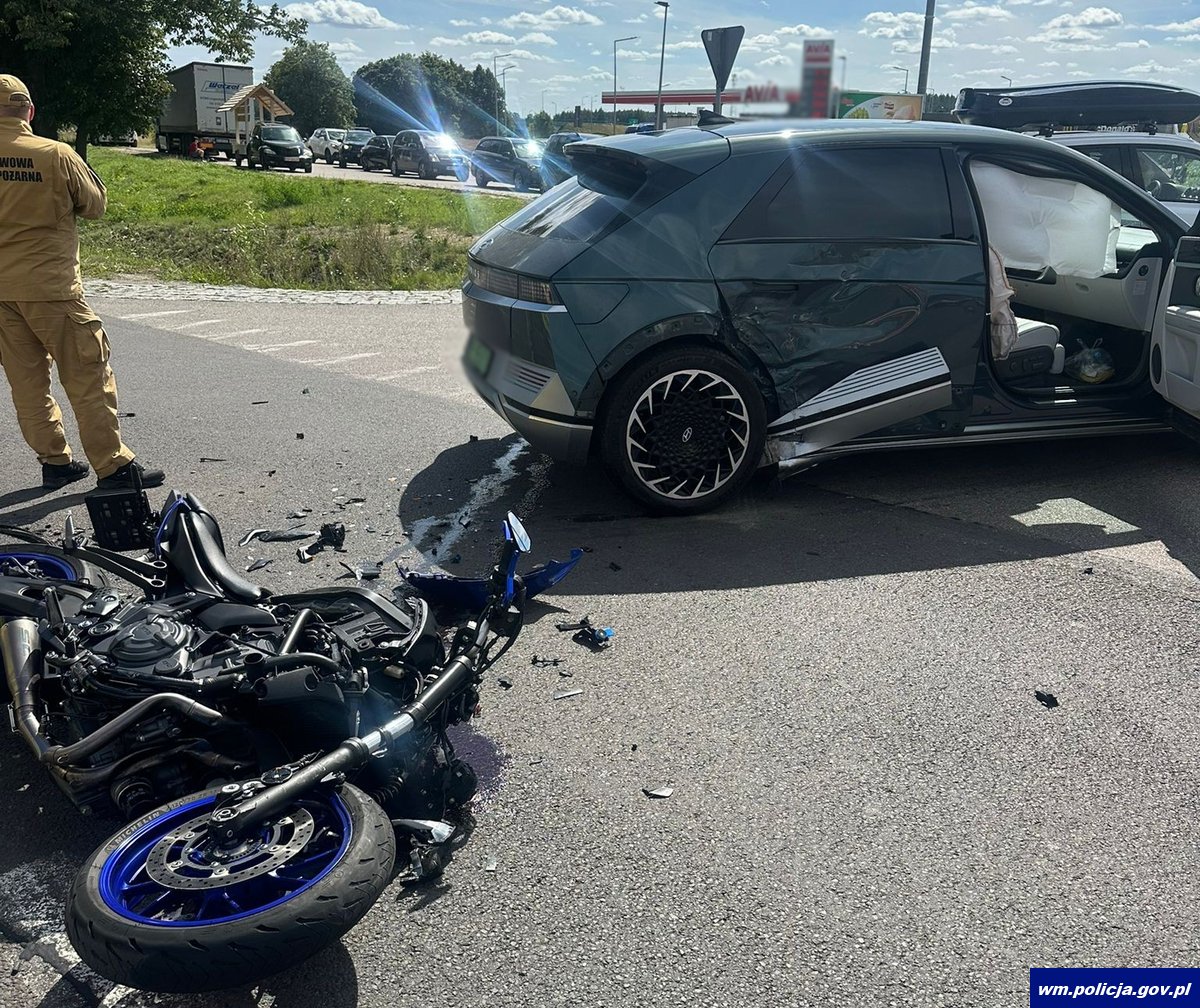 Do wypadku doszło około godziny 14:00. Jak wstępnie ustalili policjanci, 41-letni kierowca hyundaia, skręcając w lewo z drogi prowadzącej od ronda w stronę węzła Nidzica Południe, nie ustąpił pierwszeństwa prawidłowo jadącemu od strony Nidzicy motocykliście marki Yamaha. W wyniku zderzenia kierowca jednośladu doznał obrażeń i został przewieziony karetką do szpitala w Nidzicy.