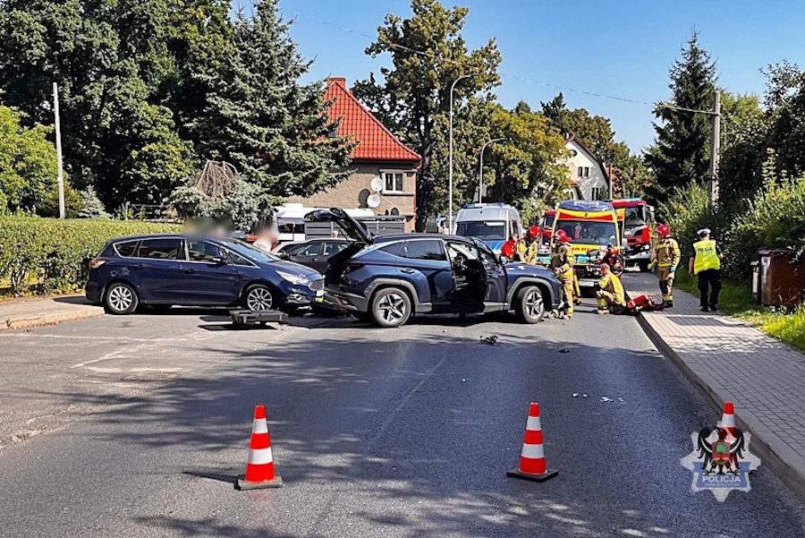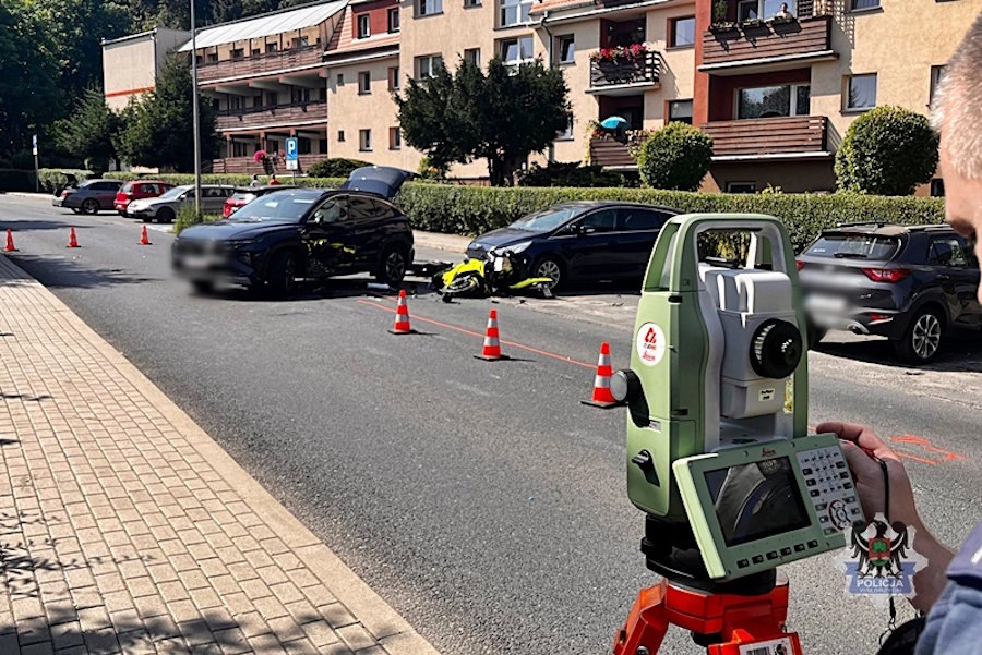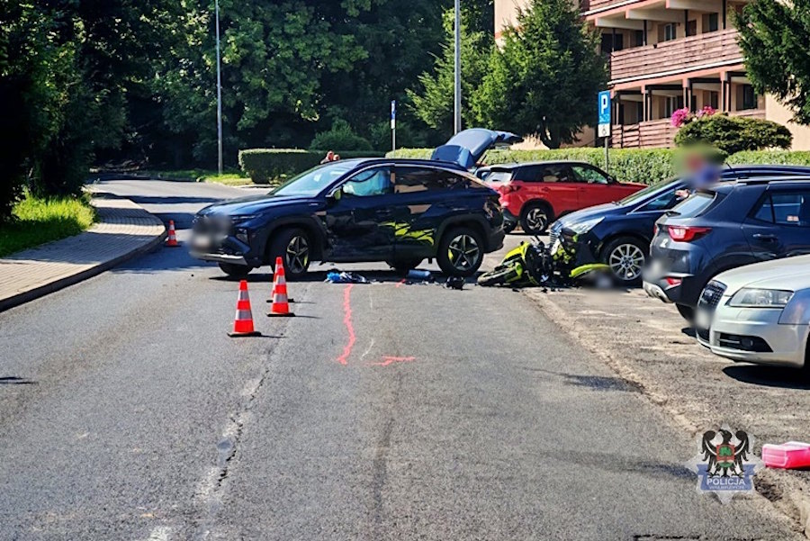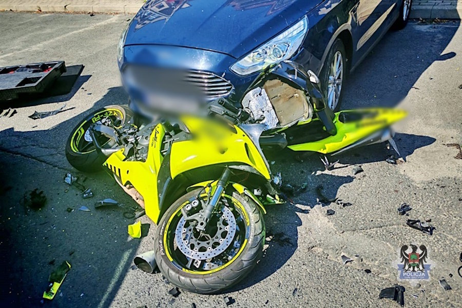 Do zdarzenia doszło przed godziną 10:00. Jak wstępnie ustalili funkcjonariusze, 47-letnia kierująca samochodem osobowym, włączając się do ruchu z miejsca parkingowego, nie zauważyła nadjeżdżającego motocykla i doprowadziła do zderzenia. W wyniku wypadku kierowca jednośladu odniósł poważne obrażenia ciała i został przewieziony do szpitala. Kobieta była trzeźwa, natomiast od motocyklisty – ze względu na jego stan – pobrano krew do badań.