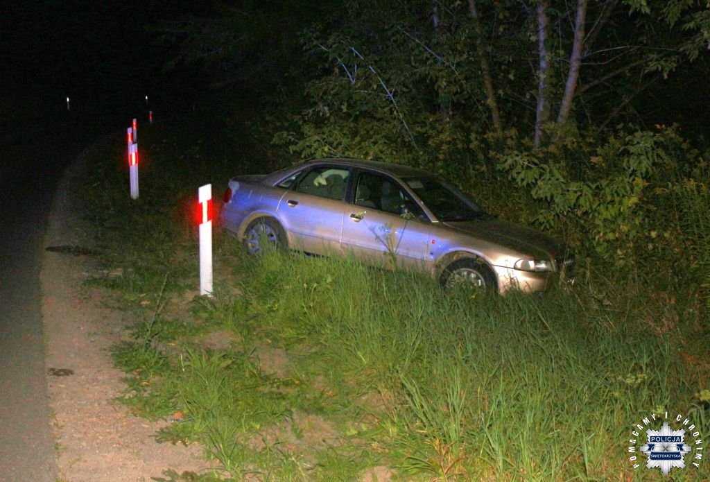 Na miejsce wysłano policyjny patrol. Funkcjonariusze znaleźli porzucony samochód na łuku drogi, częściowo blokujący pas ruchu. Kierowcy w środku już nie było. Policjanci rozpoczęli poszukiwania i po chwili natrafili na mężczyznę ukrywającego się w pobliskich zaroślach.